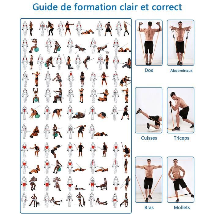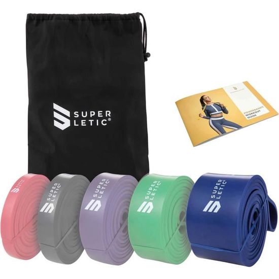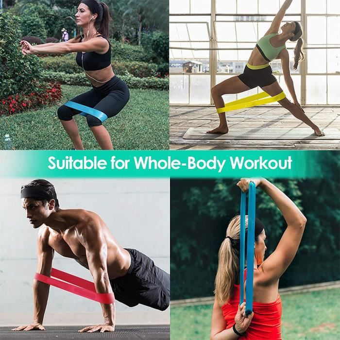 ★【Design portable】 : Compactes et faciles à transporter, elles sont livrées avec un sac spécial, pratique à la maison, à la salle de sport ou en déplacement. ★【Cinq types de résistance】 : Les bandes de résistance sont disponibles en cinq couleurs et cinq niveaux de résistance pour différents sports comme la musculation, le yoga, etc. ★【Haute qualité】 : Fabriquées en latex de haute qualité, elles sont à récupération rapide, flexibles, durables, sûres et fiables. Elastique Sport Fitness GRIFEMA GA5001, 5 Bandes Élastiques De Musculation, 5 Niveaux De Résistance Pour La Musculation, Le Pilates, Le Yoga Et Plus Encore, Vert Bleu Jaune Rose Noir Bandes De Résistance Pour une séance de musculation à domicile ou en déplacement, les bandes élastiques de musculation sont un accessoire incontournable. Avec leurs 5 niveaux de résistance, elles s'adaptent à tous les niveaux et permettent de travailler efficacement tous les groupes musculaires Resistance Band PQETBV - Lot 5 Bandes élastiques Musculation 2m Elle est plus adaptée aux exercices complets du corps, notamment pour les jambes, les hanches, le dos et les bras.