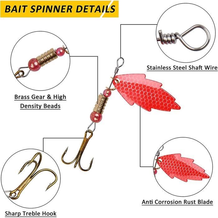 ✔ Design attrayant pour la truite et autres poissons prédateurs. Couleurs, tailles et poids. Design à triple hameçon pointu, leurre multi-angle, pas facile à échapper au poisson, couleurs vives pour attirer les gros poissons, peut supporter une grande force de traction, poisson accroché, plus facile à retirer du crochet pour protéger le poisson, spécialement conçu pour la pêche basse et la truite, améliorer le taux de capture. Les cuillères à truite sont de couleur claire et réaliste, produisent une action réaliste et brillent dans l'eau, attirent efficacement les poissons, idéales pour les poissons d'eau douce comme la truite et la carpe. Parfait pour les débutants et les professionnels., Conseils d'utilisation : 1., Alternez les leurres pour trouver la couleur/forme la plus appropriée., 2., Utiliser en conjonction avec un flotteur pour couvrir différentes profondeurs d'eau., 3., Utilisez des couleurs vives dans l'eau trouble et des teintes naturelles à l'eau claire. Pailles cuillères à granité Cuillère Truite Lot De 16 Cuillères De Pêche - Leurres Brillants ✨【Matériau de qualité】Nos cuillères à truite sont composées de paillettes métalliques de qualité supérieure et d'un sac de rangement en EVA, qui est actif aux UV, imperméable, résistant à la corrosion, durable et réutilisable. Que vous soyez un débutant ou un professionnel, il est à ne pas manquer. Taille de l'appât : le kit de leurres artificiels Spinner clignotant contient 2,8 cm, 3 g/2 pièces, 3 cm, 3,5 g/4 pièces, 2,8 cm, 3,5 g/4 pièces, 2,5 cm, 4,6 g/2 pièces, 3 cm 5 g/2 pièces, 3,3 cm, 5,2 g/2 pièces en total 16 pièces, la forme de nos appâts à truite est aérodynamique, différentes tailles et tailles Les poids sont pour différents Types de poissons, adaptés à différentes tailles et poids, conviennent à différents types de poissons, à la fois à la longue et à la longue distance pour répondre à différents besoins de pêche. Leurre professionnel pour truite : notre lot de 16 cuillères à truite contient 8 couleurs différentes d'appâts à truite, 2 pièces de chaque couleur. Leurre Cuillère Truite Brochet Perche Lot De 12 Cuillères À Truite - 2,5 G/3,5 G - Avec Boîte De Rangement Pêche Brochet Perche Matériaux de qualité supérieure et durabilité : nos kits de cuillères à truite sont fabriqués en métal résistant à la corrosion pour une brillance réaliste et des performances durables Matériau : métal + EVA + tissu Oxford Quantité : lot de 16 (8 modèles) Dimensions : 12 x 15,5 cm Emballage : boîte de rangement. Fabriqué en acier inoxydable de haute qualité et crochets antirouille pour plus de durabilité, anneau de pivotement solide pour une rotation fluide, peinture durable qui ne s'écaille pas., Utilisation polyvalente. Contenu de la livraison : 1 lot de 16 leurres à truite., Attention : 1., Contient des crochets tranchants, ne convient pas aux enfants de moins de 14 ans. Lot de 16 cuillères à truite - VOHESEA de qualité supérieure - Leurres artificiels Spinner Clignotants pour pêcheurs La cuillère à tourbillons artificiels est conçue pour les poissons d'eau douce et d'eau de mer tels que la truite, la perche et le brochet, avec un design impressionnant, des reflets forts et une manipulation facile., Solide. ✔ Robuste et étanche – pour des années d'utilisation. Portable et rangement : tous nos appâts de pêche à la truite sont stockés dans une boîte de rangement en tissu Oxford imperméable, chaque appât est fixé dans un compartiment rembourré séparé en mousse EVA, les deux côtés peuvent être placés, sûrs et portables.