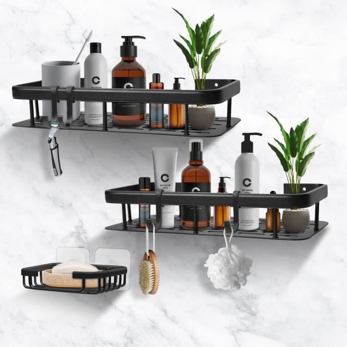 Compatibilité universelle des étagères de salle de bain: Conçu pour les surfaces lisses, notamment le carrelage en céramique (brillant/mat), le marbre et les parois de douche en verre trempé. Conception compacte et intelligente : notre organisateur de douche est doté d'une structure à grille ouverte pour un drainage et une circulation d'air optimaux. Ensemble d'étagères de douche d'angle comprenant 2 étagères de différentes tailles et 4 adhésifs haute résistance. Ces étagères sont conçues pour s'adapter à divers besoins de rangement, allant des bouteilles de voyage aux produits de toilette de taille familiale ETAGERE-DOUCHES COMBINÉ - Le support de douche Vinabo se présente sous la forme d'un ensemble de deux pièces et d'un porte-savon de douche, notre support de douche est conçu avec des crochets sur le côté, ce qui peut vous aider à économiser de l'espace supplémentaire pour l'utilisation Il peut également servir de rangement de douche polyvalent dans les salles de bain, les cuisines ou les balcons. AJW-Etagere Salle de Bain Sans Percage Antirouille Etagere Douche Inox Déconseillé pour les surfaces poreuses comme le papier peint ou les murs en béton. Installation sans perçage de l'étagère de douche: Il suffit de coller notre support adhésif sur un mur propre et d'attendre 24 heures. YMYNY Étagère D'angle De Salle De Bain Sans Perçage,Panier De Douche Adhesifsupport De Rangement En Aluminium Antirouille Organisateur De Douche Mural Pour Accessoires De Salle De Baingris 2 Pack 87138592 Accessoire de salle de bain polyvalent : au-delà de leur simple utilisation comme étagères d'angle, ces étagères de salle de bain antirouille sont parfaites dans les coins de cuisine (pots à épices), les buanderies (détergents) ou les meubles-lavabos (produits de beauté). Vinabo Étagère de Douche, 2 PCS Etagere Salle Angle de Bain Antirouille, Rangement Salle de Bain Sans Perçage, Accessoire de Rangement Adhésif avec Crochets, Noir Ces étagères d'angle de salle de bain multi-tailles s'adaptent à différents besoins de rangement et sont parfaites pour ranger vos essentiels de douche, des bouteilles format voyage aux produits de toilette de taille familiale.