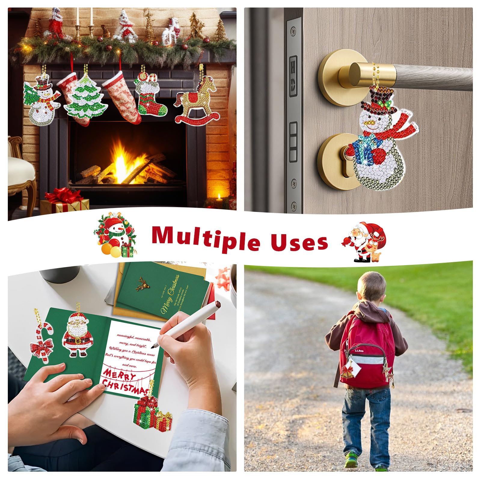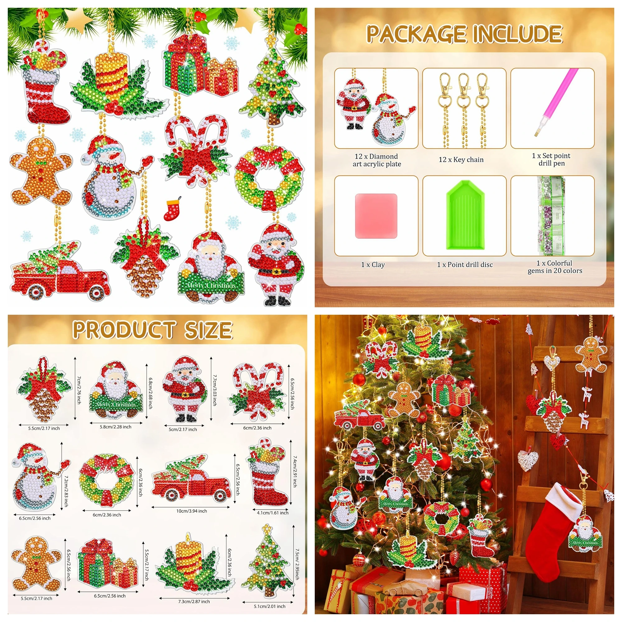 L’adhésif thermofusible écologique assure une excellente fixation des diamants, évitant toute chute même après une longue utilisation. Conçu pour les amateurs de bricolage, les enfants et les adultes, ce lot de 12 porte-clés allie créativité, détente et décoration. Cette activité manuelle relaxante aide à réduire le stress, développe la patience et stimule la créativité. Facile à coller, elle développe la concentration et la motricité fine tout en réduisant le stress. Simple à utiliser, ce kit contient tous les accessoires nécessaires : plateaux, stylo applicateur, cire adhésive et chaînes métalliques. 12 Pièces Diamond Painting Noel,5D Peinture Diamant Noël Les strass multicolores et les détails soignés ajoutent un éclat festif à chaque création, parfaits pour la décoration de Noël. 【Activité Créative et Relaxante】 Cette peinture diamant DIY convient aux enfants comme aux adultes. Ajoutez une touche de fantaisie à votre quotidien avec 12 porte-clés différents. Porte-clés diamant à faire soi-même, créatif, orné de strass et de perles en résine rondes, inaltérables. Couleurs parfaitement assorties, brillent de mille feux. Foret électrique double face inclus Broderie Diamant Noel 24 Cles Noël Kit 12 Porte-clés Diamant Painting Noël - DIY - Père Noël, Sapin, Bonhommes De Neige - Cadeau Créatif Porte-clés DIY Enfant Kit Peinture Diamant Noël Chaque modèle présente des couleurs éclatantes et un effet brillant qui attire le regard, idéal pour décorer sacs, clés ou sapins. Les strass en résine haute brillance captent la lumière sous tous les angles, créant un effet 5D éblouissant. Kit Complet de Peinture Diamant Noël 5D] Ce set comprend 12 porte-clés en peinture diamant 5D DIY avec des motifs de Noël variés et des outils nécessaires Grâce à la colle forte écologique et aux supports résistants, vos créations dureront longtemps sans perte de couleur ni de brillance. 【Designs Festifs et Variés】 Nos peintures diamant Noël offrent 12 motifs uniques : Père Noël, sapin, renne, flocon, chaussette, bonhomme de neige, cloche et couronne. Créez une atmosphère magique et festive avec ce kit complet de peinture diamant Noël 5D DIY. Parfaits pour décorer des sacs, cartes, tasses ou sapins, ils apportent une touche personnalisée et scintillante à votre intérieur et vos accessoires.