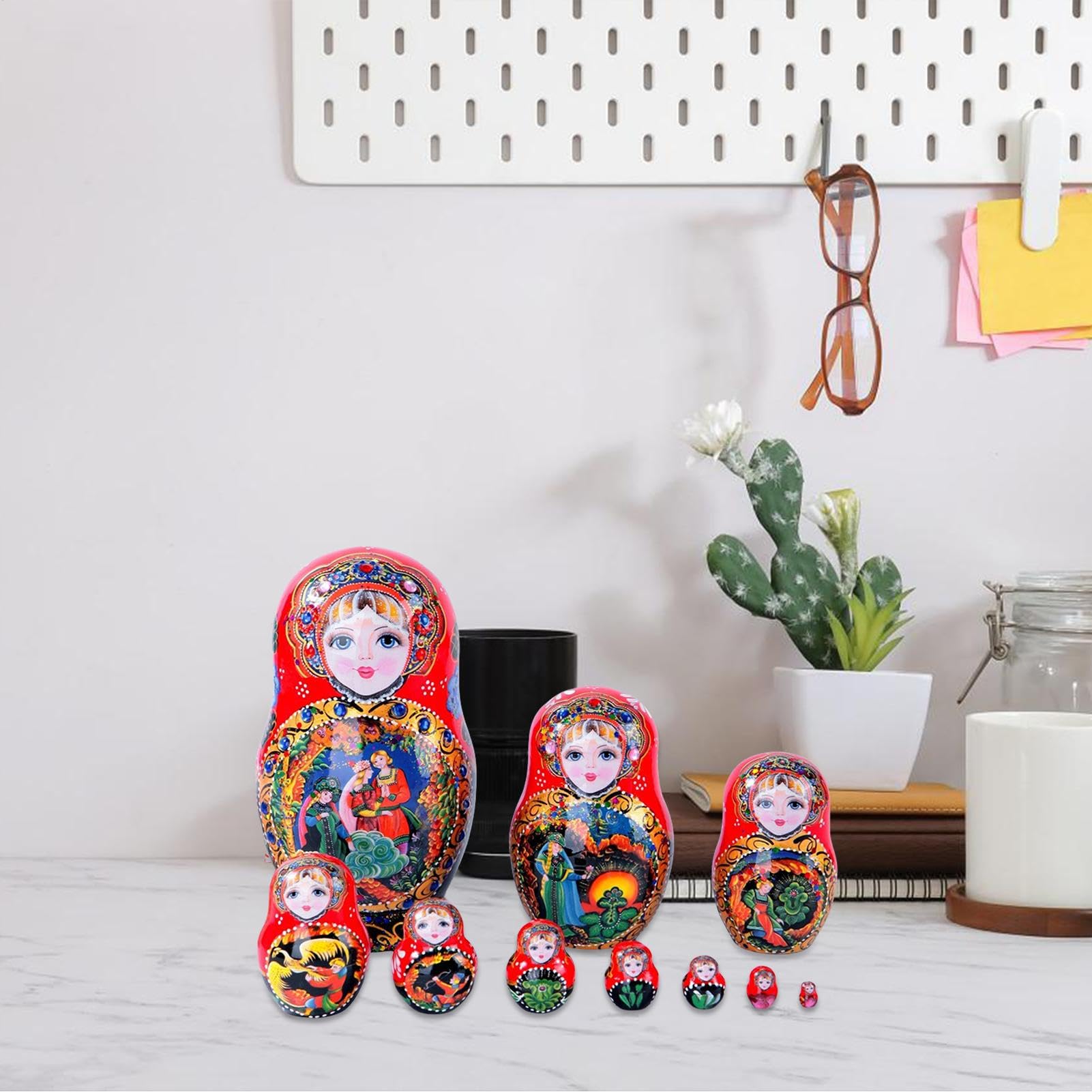 BPILOT Poupées Russes Poupées gigognes Russes 10 Couches poupées Ma Artisanat Russe Cadeau Original Artisanat Russe Poupées Gigognes Russes Matriochka - 10 Pièces En Bois Peint à La Main - Set De Collection Décoration Traditionnelle Décoration Traditionnelle Russe Poupées Bois Haute Qualité La finition lisse et polie et les motifs détaillés peints à la main garantissent qu'ils restent un objet précieux dans votre maison ou votre collection. Le savoir-faire de chaque poupée met en valeur le patrimoine culturel et la beauté intemporelle. Pièces de collection uniques : chaque poupée gigogne est une œuvre d'art unique. 10 couches Poupées gigognes, Poupées Russes Matriochkas Traditionnelles en Bois Peint Manuelle, cadeau pour anniversaire, noël · Rouge · Age (A partir de) : 3 ans Idée cadeau polyvalente : avec son design complexe et sa signification , cet ensemble de poupées gigognes russes constitue un cadeau exceptionnel pour les amateurs d'art, les collectionneurs ou toute personne qui apprécie l'artisanat raffiné. Poupée En Bois Matriochka Souvenir Russe Poupées Gigognes Russes Poupée... Bois robuste et de haute qualité : fabriquées à partir de bois robuste et de haute qualité, ces poupées gigognes sont conçues pour durer des générations. Affichez-les sur des étagères, des cheminées ou des bureaux pour créer une atmosphère chaleureuse et accueillante dans votre salon, bureau ou chambre d'enfant.