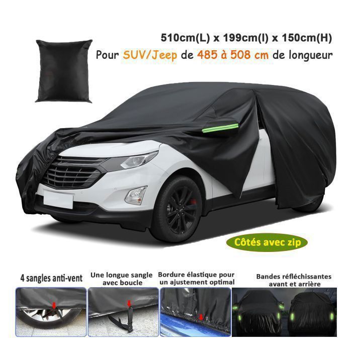 Si votre véhicule n'est pas répertorié, veuillez nous contacter avec les informations le concernant et nous vous créerons une housse sur mesure. Haute densité, haute résistance à la déchirure et haute résistance au feu. [Contenu de l'emballage] 1 housse de voiture ; 1 sac de rangement. Un sac de rangement est inclus pour plus de commodité. Convient à tous les types de voitures, y compris les berlines, coupés, cabriolets, SUV et monospaces. Demi Voiture, Demi Housse Protection SUV Respirante Universel Bache Voiture SUV Imperméable Protection Auto pour Voiture Anti Givre, Neige, Glace, Pluie Et Soleil 【Coupe-vent】 Bache Protection Voiture Exterieur pour Les Types de SUV, La housse de voiture coupe-vent est dotée de quatre brise-vent pour une stabilité optimale en cas de vent fort, prévenant ainsi les dangers potentiels et protégeant votre véhicule et son environnement. 【Installation et retrait faciles】Notre housse de voiture est conçue pour être pratique et facile à installer et à démonter. Protection parfaite pour votre véhicule grâce à un matériau résistant aux intempéries et aux UV; Non-tissé ultra-doux protégeant la peinture à l'intérieur... Bâche Voiture Étanche Couverture De Protection Capot De Pare-brise Voiture Couverture De Neige De Voiture 5 Couches Épaissir Anti-gel Pare- soleil Protecteur Pièces D'auto Housse de Voiture Bâche Voitu Profitez de toutes les saisons en toute simplicité. Conception spéciale : Fermeture éclair côté conducteur, bandes réfléchissantes et bande coupe-vent. Kayme Bâche Voiture Étanche Respirante, 7 Couches Housse de Protection Voiture Extérieur Contre Pluie Soleil Poussière avec Zip et Doublure en Coton pour 4x4/SUV 460 à 485 cm, YL Caractéristiques spéciales : Imperméable, résistant à la pluie, à la neige, au soleil, au vent, au gel, à la poussière et aux rayures. Protège la peinture et le verre de votre voiture de la pluie, de la neige, du soleil, du vent fort et d'autres dommages. Garantie de qualité : Respirant, durable et facile à nettoyer. Pour toute question, n'hésitez pas à nous contacter !