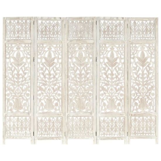 Matériau : MDF et bois de manguier solide avec finition grise Elle peut également être facilement pliée pour économiser de l'espace lorsqu'elle n'est pas utilisée. Notre cloison de séparation autoportante et pratique à 5 panneaux peut être utilisée comme cloison, écran d'intimité ou pour la décoration. Elle offre une intimité idéale dans la chambre à coucher ou un compartiment de la pièce Description du produit · Matériau : MDF et bois de manguier solide avec finition grise · Taille : 200 x 165 cm (l x H) · Avec des motifs sculptés à la main · Style... Avec des motifs sculptés à la main, Style classique VidaXL Paravent 5 Panneaux, 250x200 cm, Polyester & Structure en Fer, Noir, Écran de Confidentialité Pliable, Cloison 350189 - Bricolage Matériau : MDF et bois de manguier solide avec finition grise; Taille : 200 x 165 cm (l x H); Avec des motifs sculptés à la main Elle peut également être facilement pliée pour économiser de l'espace lorsqu'elle n'est pas utilisée Séparateur Pièce 5 Panneaux VidaXL Cloison De Séparation 5 Panneaux Séparateur De Pièce Diviseur Séparateur Pièce Pliable Design Remarque : parce que le produit est fait à la main, de petites différences dans le motif et la couleur peuvent exister. Ajoutez une touche de charme classique à votre intérieur avec notre élégante cloison de séparation sculptée à la main ! Elle est parfaite à placer dans la chambre à coucher pour créer un dressing privé et séparé ou une section d'une partie d'une pièce.