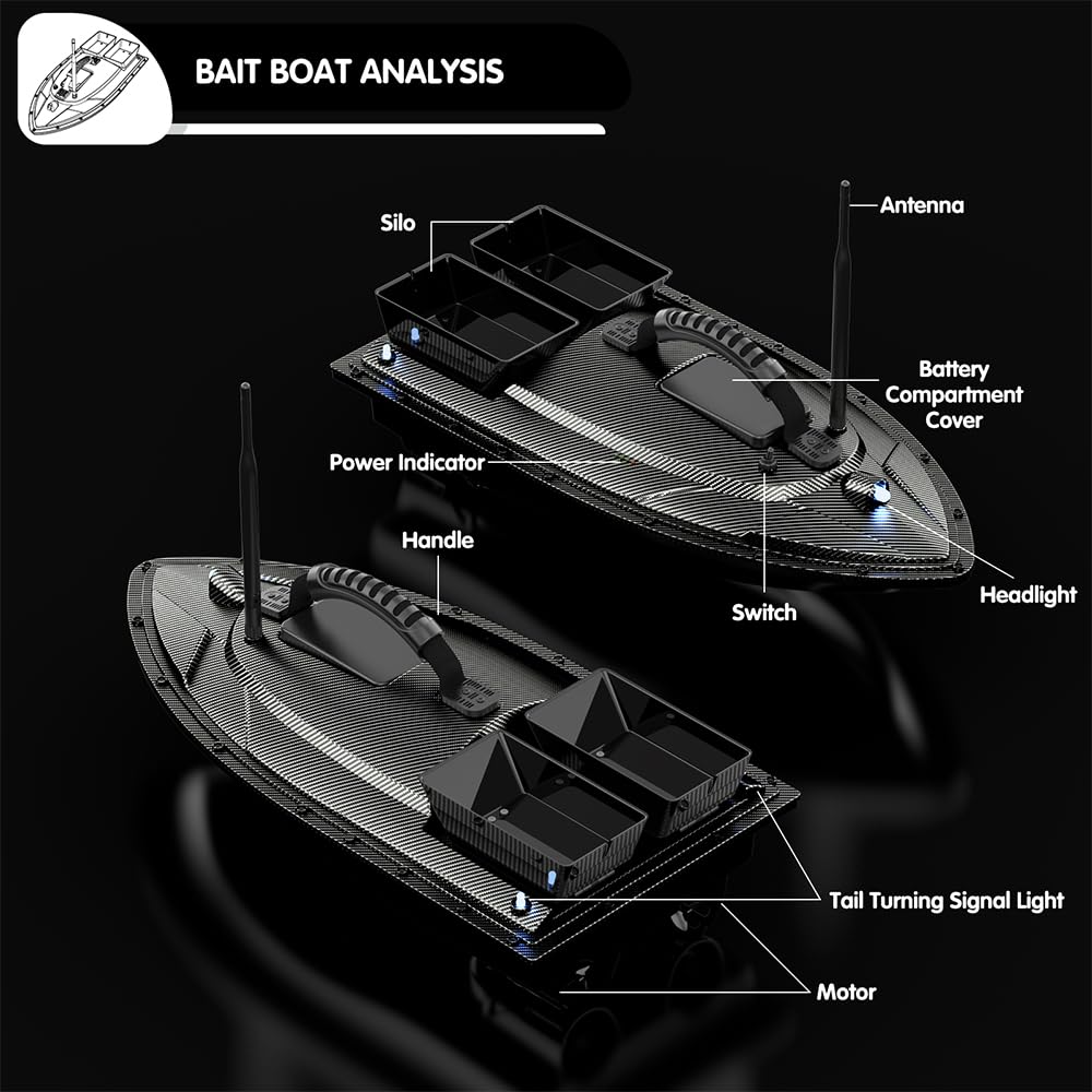 Temps de charge: 4 heures Temps de travail: 2 heures Max. Vitesse: 5,4 km / h Plage de télécommande: 500 mètres Taille du bateau 2,15 kg / 4,7 lbTaille du colis: 60 * 34 * 28 cm / 23,6 * 13,4 * 11 poucesPoids du colis : 3,75 kg / 8,3 lbListe des packages :1 * bateau d'appâts de pêche1 * Télécommande1 * chargeur1 * câble de charge pour télécommande2 * Hélice1 * sac de rangement Appareil Pêche Automatique GPS Bateau D'appât RC 500m Bateau D'appât De Pêche RC Avec Moteur Bateau De Pêche RC Avec GPS Caractéristiques:Construction ABS robuste, résistant au vent et aux vagues, capacité de charge de 3 kg. La mise à niveau de l'hélice à trois pales à haut rendement offre une puissance élevée et une croisière rapide. [Fonction anti-perte] : le bateau appât reviendra automatiquement à faible puissance, perdant le signal ou hors de portée pour éviter de se perdre, vous n'avez donc pas à nager pour le récupérer. Avec une portée de 500 mètres, il vous permet de déposer votre appât avec précision à une distance conséquente Amewi Bateau D'amorçage, Bateau Appât RC Prêt à Fonctionner RtR 600 Mm 2852550 Caractéristiques:Matériau : ABSBatterie : 12 000 mAhMax. [Moteur puissant] : système de moteur à double puissance avec un fonctionnement silencieux pour éviter de déranger les poissons. Les batteries au lithium de 12 000 mAh peuvent fonctionner pendant 5 à 6 heuresLes doubles moteurs et hélices fournissent une forte puissance.