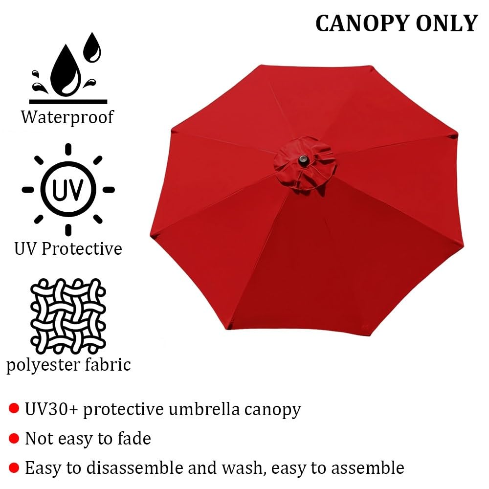 (Auvent de rechange uniquement, pas de support de parapluie); Application Large : Convient aux cadres d'ombrelle à 6/8 baleines. Matériau : La housse de rechange parasol est fabriquée en tissu polyester, avec une couture excellente et des points de tension renforcés, ce qui la rend durable et adaptée à une utilisation en extérieur à long terme Il existe à la fois des tissus unis pour parasols de jardin et des motifs - comme des fleurs, des rayures, des pois, des coeurs, etc. Vous trouverez le matériau parfait pour un parasol de jardin, quel que soit le style dans lequel votre jardin est aménagé Les évents sur le dessus favorisent la circulation de l'air pour le garder au frais et empêcher le parapluie d'être soufflé par le vent; Les Meilleurs Toile De Rechange Pour Parasol 6 Baleines Ce design ingénieux rend ce type de housse de rechange très économique; Selon la saison ou l'occasion, habillez votre jardin, votre piscine, votre terrasse ou votre balcon avec l'une de nos toile de rechange pour parasol d'extérieur Toile Parasol Polyester Résistant UV 2.7M | 3M | 6 Baleines | 8 Baleines Toile De Rechange Pour Parasol De Housse Rechange Parasol Veuillez vous référer à l'image de détail pour la mesure des baleines et mesurer la longueur des baleines avant l'achat. Ravivez votre look avec une nouvelle housse de rechange pour parasol, qui attirera certainement l'attention lors de votre prochaine fête, vacances, chez le voisin ou pour un look magnifique au quotidien. Matériau : La housse de rechange parasol est fabriquée en tissu polyester, avec une couture excellente et des points de tension renforcés, ce qui la rend durable et adaptée à une utilisation en extérieur à long terme;