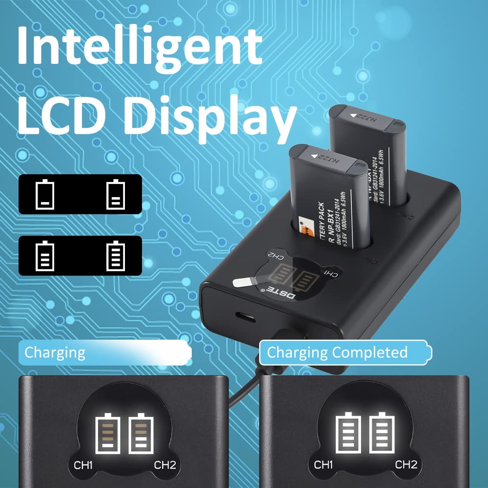 Sécurité: IC chip circuit de Haute qualité & protection intelligent, garantit la sécurité et la longue durée de vie Remplacement la batterie de Sony NP-BX1 Cyber-shot DSC-H400 DSC-HX50V DSC-HX300 DSC-HX400 DSC-RX1 DSC-RX1R DSC-RX100 DSC-RX100 MII RX100 M3 DSC-WX300 DSC-WX350 HDR-AS10 HDR-AS15 HDR-AS30V HDR-AS100V HDR-AS100VR HDR-CX240 HDR-MV1 HDR-PJ275 FDR-X1000V FDR-X3000 FDR-X3000R Contenu: Lot de 2 batteries NP-BX1 + chargeur + câble USB , Batteries: 1600mHA, 3., 7volts, 30% plus grande que les autres., Chargeur: Sortie 8., 4V/0., 8A, 25% plus rapid que les autres Sony Zve1 Sony Zv-1 B0B4D44YWPENEGON NP-BX1 Juego De 3 Baterías De 1300 MAh Y Cargador LCD Para Sony NP-BX1 Y , Cyber-Shot DSC-RX100, DSC-RX100 II/III /M4/M5/M6/M7 ////VA, DSC-RX100M II, HDR-CX44 2005 G 1 Battery-Batterie et chargeur pour appareil photo GOPRO HERO 3, 1600mAh - Cdiscount Appareil Photo Batterie] Tension d'alimentation : 3,6 V ; Capacité : 1600 mAh ; Puissance : 5,8 Wh Cellules Li-ion de qualité supérieure pour une plus longue durée de vie... Powerextra Lot de 2 batteries Li-ion de rechange Sony NP-BX1