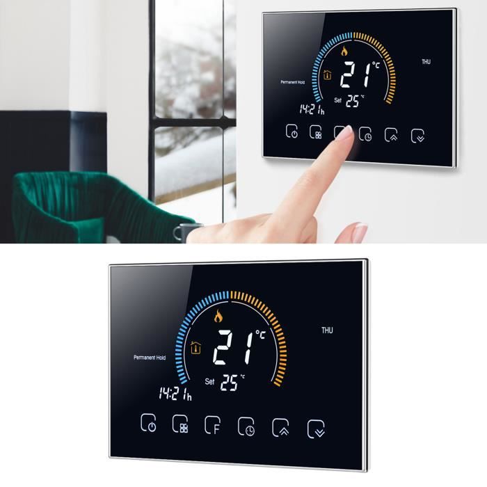[AFFICHAGE COULEUR] - L'écran couleur à cristaux liquides sur le panneau de commande offre une visibilité claire de la température actuelle, de la température réglée et permet des réglages pratiques de la température en temps réel. [TEMPÉRATURE DE CONTRÔLE PRÉCIS] - Ce thermostat peut contrôler avec précision la température de chauffage, fournissant une température constante pour le sauna ou le système de chauffage par le sol. [CONTRÔLE DU BOUTON] - La conception du bouton facile à utiliser permet contrôleeffort du système de chauffage en fonction des besoins personnels, des saisons ou des exigences intérieures. Thermostat Intelligent Sauna Thermostat Intelligent : Contrôle Intelligent Et Commodité Pour Votre Maison Thermostat écran Couleur Tactile Thermostat Intelligent pour Chauffage par Le Sol et Contrôle du Sauna, Bouton de Commande, Affichage Couleur, Installation Facile pour Hammam Domestique (Black 4Kw] Steamplus Générateur de vapeur pour Hammam à usage domestique... Qualité-thermostat de chauffage à écran couleur tactile ME5516 16A Thermostat Programmable LCD
