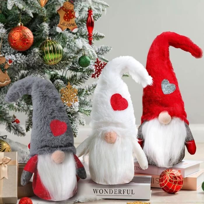 Ornement Sapin Décoration Maison Fêtes Cadeau Noël Familial 2 Peluches Chef Gnomes De Noël D-FantiX - 21cm, Fait Main, Décoration Cuisine Ou Maison Ornement Noël Peluche Gnomes Sapin Chapeaux Pailletés Facile à utiliser et à exposer : Chaque lutin est équipé d'un interrupteur simple au bas pour un contrôle rapide de l'éclairage. Tu veux créer ton glande de Noël fait main facilement choisis une couleur principale pour ton gnome fabriquer le corps simple en laine... Gehydy Traîneau GNOME de Noel Lot de 3 Deco Noël GNOME Peluche Elfe Christmas Décoration pour Maison Cuisine - Bleu ; Gris. €15.99 with 20 percent savings€15.99 Alimentés par 3 piles AAA (non incluses), les lutins lumineux créent une atmosphère festive pour la maison ou le bureau, ajoutant chaleur et charme à la saison de Noël. Alimentés par batterie et faciles à placer n'importe où, ils offrent des options de décoration flexibles, garantissant que votre espace brille de charme festif tout au long de la saison. Gnomes de noël images vectorielles, Gnomes de noël vecteurs libres de Plus de 90 % disent qu'ils sont devenus une partie précieuse de leurs traditions de Noël, apportant chaleur et esprit de Noël, en faisant un cadeau idéal pour les amis et la famille. Ajoutez une touche de magie de Noël à votre maison avec les lutins lumineux de Noël ! Que vous les placiez sur le sapin, la cheminée ou au centre de votre table de fête, ces lutins apportent charme et joie à chaque pièce. Parfaits pour la décoration de la maison ou du bureau, ou comme cadeau de Noël attentionné, ces lutins illumineront vos fêtes pendant de nombreuses années. Leur barbe duveteuse, leurs bras tricotés et leur peluche non toxique de haute qualité les rendent à la fois durables et élégants. Parfait pour la maison, le bureau ou comme cadeau, ces lutins apportent non seulement de la décoration, mais aussi de la joie et de la chaleur, aidant à créer des souvenirs durables pour la saison de Noël. Chaleur et joie des fêtes : La douce lueur des lumières LED remplit n'importe quel espace d'une ambiance chaleureuse et festive. Cet ensemble de 3 lutins faits à la main et éclairés par LED est la décoration parfaite pour tous les amoureux de Noël.