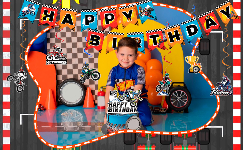 Ce set de décoration pour fête Dirt Bike contient 1 x bannière 'Happy Birthday' 1 x bannière de pneus Dirt Bike Ce décor de motocross convient parfaitement aux fêtes d'anniversaire dans le garage ou aux soirées en extérieur sur le thème des trails que ce soit à l'intérieur ou à l'extérieur Notre guirlande Dirt Bike avec motifs de pneus entrelacés et éléments de drapeaux à carreaux se drape sans effort sur les tables de desserts ou les décors photo Deco Anniversaire Moto Cross JeVenis Décoration Fête Motocross Bannière Anniversaire Guirlande Dirt Bike Anniversaire Homme Passionné Moto Décoration Motocross Fête Guirlande Pneus Moto Parcourez notre sélection de bannière de motocross : vous y trouverez les meilleures pièces uniques ou personnalisées de nos boutiques BANDEROLE,C02--Guirlande de décoration de gâteau pour adultes, bannière... JeVenis Robot Cake Topper - Décoration de Château aroc | Ubuy
