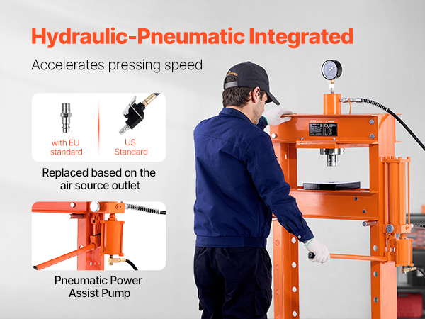 S'adapte de manière flexible à n'importe quel établi ou situation de montage. Matériau : acier au carbone, caoutchouc, acier au manganèse Procédé : poinçonnage, coupe, soudage, pulvérisation Charge maximale : Pression : 6T/13227,74 lbs Course : 125 mm. La construction à profil en H certifiée avec ressorts haute performance garantit une stabilité extrême - Votre presse d'atelier résiste à une pression 6T sans vacillement ni collapsus pendant des années d'utilisation industrielle. Notre équipe de service allemande résout les problèmes dans les 24 heures. Contenu de la livraison : 1 presse hydraulique. Presse hydraulique à cadre en H de 12 tonnes de Mophorn, plaques d Soupape de trop-plein intégrée qui protège automatiquement en cas de surcharge - La presse à roulement de roue parfaite pour des réparations précises sans risque pour les pièces ou les mains. Design ergonomique et protection de la peau : bords sans bavures et poignée confortable gainée de caoutchouc pour réduire la fatigue. Presse hydraulique à cadre en H de 12 tonnes de Mophorn, plaques d... Presse 6 Tonnes Manuelle Presse Hydraulique D'atelier 30 T Presse Hydraulique Avec Plaque Presse Hydraulique Atelier Réglage facile de la hauteur et polyvalence : les trous de marches perfedries permettent un réglage de la hauteur sur 4 niveaux en quelques secondes. Distance de fonctionnement : 0-28 cm. Presse d’atelier hydraulique 6T manomètre cadre réglable – EBERTH Dimensions de la tête : 40 x 14 cm Dimensions du produit : 50 x 40 x 90 cm. La pression 6T augmente votre efficacité de 60 %. Mode de fonctionnement : manuel. – Votre solution d'atelier de presse simple avec une garantie de qualité à vie.