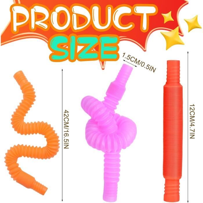 8 Pièces Mini Jouets Sensoriels Tubes Pop, Jouets Anti Stress Enfant Pop Tubes Mini Jouets Sensoriels, 12 Pièces Jouets Sensoriels De Tuyau Extensible Multicolore Tubes Pop Sonores Enfants Les jouets sont légers et portables, faciles à transporter pour les sorties. Les couleurs sont riches pour répondre à vos différents besoins, aider à masser vos tympans et apporter beaucoup de rires et de bons souvenirs. Les enfants adoreront entendre ce son incroyable. Ce que vous obtenez: il y a 8 pièces de mini jouets tube pop, disponibles en 8 couleurs différentes (comme sur la photo), qui suffisent pour répondre à vos besoins de détente, ou à partager avec votre famille et vos amis 【Soulagement du stress】Le tube extensible sensoriel est un jouet anti-stress amusant et fonctionnel conçu pour tous les petits doigts occupés et un jouet passionnant pour les enfants ayant des besoins spéciaux. Grossistes Pop-It – déstockage jouets sensoriels anti-Stress bon marché... 【Cadeaux idéaux pour les enfants】Idéal comme cadeau d'anniversaire, cadeau de Noël, cadeau de fête pour la Saint-Valentin, récompense de classe, cadeau d'échange scolaire, idéal pour les enfants présentant des retards de développement ou des besoins particuliers. 【Matériel de qualité】Ces mini tubes sensoriels sont fabriqués en plastique PP très épais pour plus de durabilité et de solidité, et ces jouets ont une texture confortable qui n'est pas facile à casser pour les enfants.