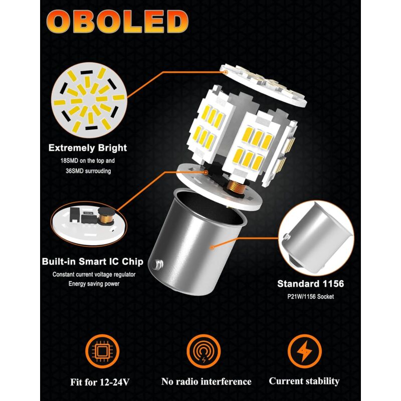 Service à la clientèle : Nous fournissons le meilleur service à nos clients, si vous rencontrez des problèmes avec nos produits, n’hésitez pas à nous contacter à temps, nous vous fournirons des solutions raisonnables. Defvnsy P21W 1156 BA15S Ampoule LED, 6500K Blanc Ampoules Voiture 12V Super Billant: Ampoule LED 2X P21W, Chaque ampoule est dotée de 24 puces LED très lumineuses, angle d'éclairage d'environ 360 ° sans angle mort. · Large tension Large application : utilisé pour les feux de freinage, les feux arrière, les feux de jour, etc. Longue durée de vie : Fabriqué en matériau PCB, dissipation thermique rapide et longue durée de vie. Apoule sonore de recul : le top 20 des eilleurs de 2025 | eilleurs.info Mais certains modèles nécessitent l’installation d’une résistance de 50 watts, 6 ohms pour éviter les ultra-flashs ou les codes d’erreur. Forte dissipation thermique : coque de processus de galvanoplastie. Ampoules LED P21W 1156 2PCS 1156 BA15S P21W Ampoule LED, Ampoule Voiture Rouge 144 LED, Super Lumineuse étanche Convient Pour Les Feux De Recul Ampoule 12V