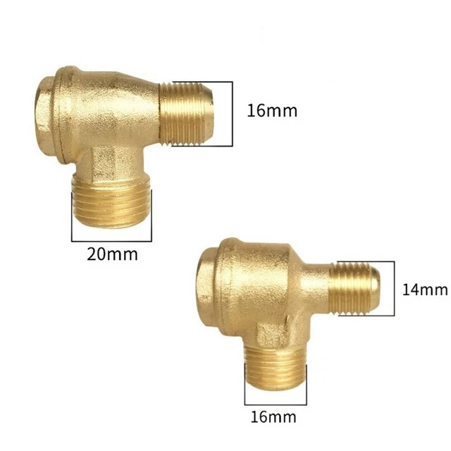 Piece Detachee Compresseur Clapet Anti-retour, Compresseur D'air En Laiton à 3 Ports Clapet Anti Retour Compresseur D'air Male Filetage De Tuyau Outil De Raccordement 20 16 10mm Clapet Anti Retour Pvc 32 Convient pour les compresseurs d'air sans huile : conçu pour les compresseurs d'air sans huile, ce clapet anti-retour est spécialement conçu pour répondre aux exigences de ces compresseurs. Accessoires pour compresseur d'air à 2 ports clapet anti-retour pour pompe à air. * Installation rapide et facile avec connexions filetées. * Résistance à la compression, résistance, haute performance et haute fiabilité. * Mieux remplacer les clapets anti-retour anciens ou endommagés des compresseurs d'air. 1 Le raccord filetés de clapet anti-retour de compresseur d'air en laiton à 2 voies est conçu pour offrir une solution efficace contre l'écoulement inverse Contenu de l'emballage : 1 clapet anti-retour. Il garantit des performances optimales et une étanchéité sûre, un fonctionnement fluide. Druckluft Kompressor Ventil Rückschlagventil Ersatzteile Rohrverbinder-Werkzeug Plusieurs options de taille : ce clapet anti-retour est disponible en deux diamètres de filetage mâle : 16 x 14 mm et 20 x 16 mm, offrant une polyvalence pour s'adapter à différents compresseurs d'air. * Résistance à la compression, résistance, haute performance et haute fiabilité. *Couleur : doré (comme sur les photos). * Convient pour : compresseur d'air sans huile., *Quantité : 1 pièce. * Diamètre du filetage mâle : 16 x 14 mm, 20 x 16 mm. 【Performance fiable】Avec sa résistance à la compression et sa résistance, ce clapet anti-retour assure une haute performance et un fonctionnement fiable. Installation facile : avec des connexions filetées, ce clapet anti-retour peut être facilement installé sans aucun souci. * Meilleur remplacement des clapets anti-retour anciens ou endommagés des compresseurs d'air.