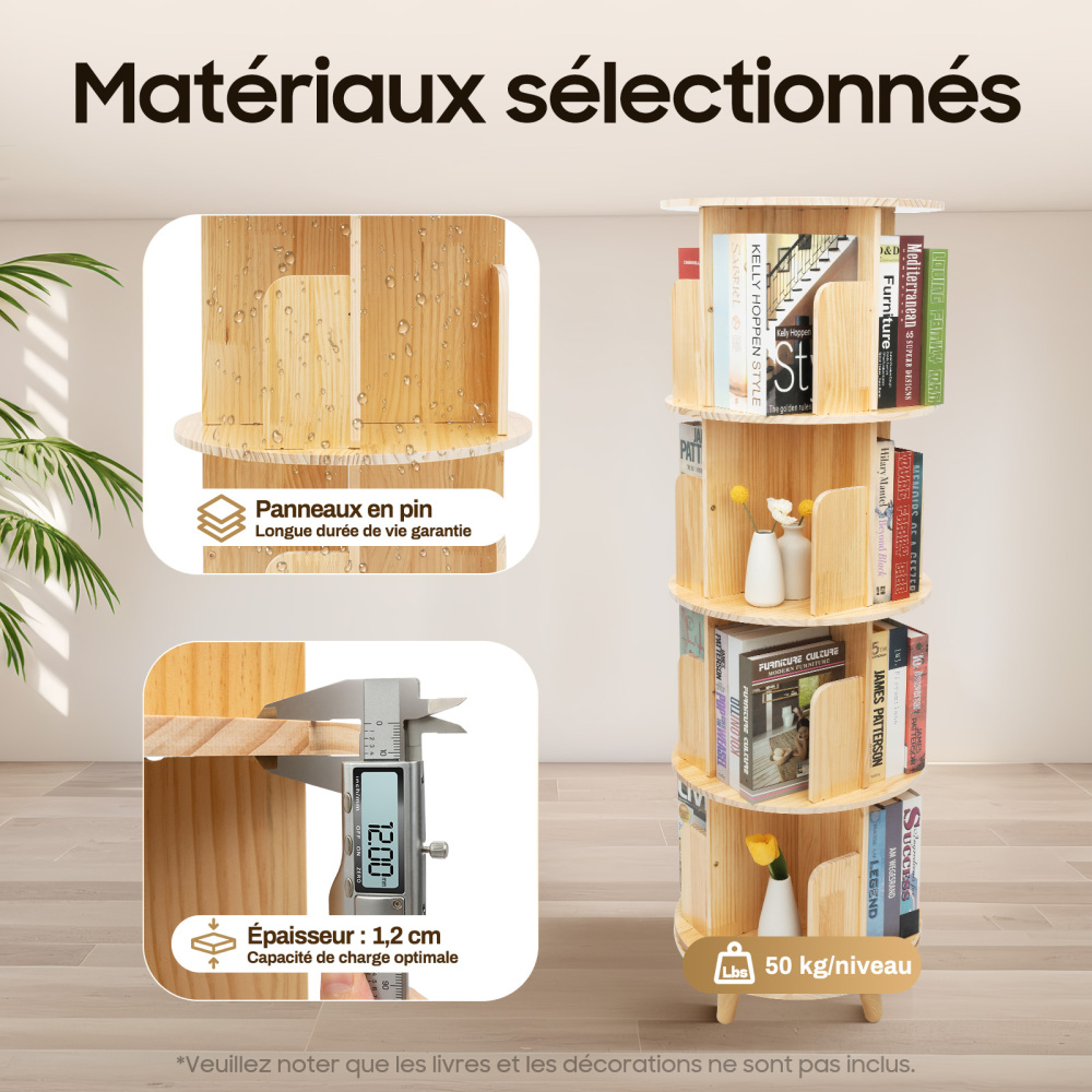 Ces matériaux peuvent résister à l'épreuve du temps et peuvent durer des décennies s'ils sont correctement entretenus Les livres moyens et grands peuvent être placés de grande capacité et économise de l'espace : la bibliothèque à 4 niveaux dispose de 16 compartiments et peut contenir 80 à 100 livres. Gagnez du temps et des efforts : en raison de la nature de cette bibliothèque rotative, nous pouvons trouver les livres que vous voulez sans avoir à passer du temps entre les étagères comme nous le faisons avec les étagères traditionnelles. Installation facile et excellent service : toutes nos bibliothèques sont livrées avec toutes les pièces et le matériel nécessaires pour l'installation. Les étagères de rangement rondes rotatives sont adaptées pour la chambre, le salon, la chambre d'enfant, le bureau et la salle de jeux, ce qui peut rendre le petit espace inutilisé dans la famille plus personnalisé Bibliothèque Tournante Bois Bibliothèque Rotative à 3 Niveaux, Étagères Empilables étagère Rotative 3 Niveaux Nos étagères ont un faible encombrement mais une grande capacité, parfaites pour l'organisation de la maison Pour les personnes âgées à mobilité réduite, ils peuvent facilement accéder aux livres qu'ils veulent sans avoir à marcher ou à se pencher de manière significative, améliorant considérablement la facilité d'utilisation Pour les personnes âgées à mobilité réduite, ils peuvent facilement accéder aux livres qu'ils veulent sans avoir à marcher ou à se pencher de manière significative, améliorant considérablement la facilité d'utilisation. Vous pouvez assembler l'étagère en 1 niveau, 2 niveaux, 3 niveaux selon les besoins. Cette bibliothèque rotative à 360 degrés est alimentée avec du bois massif de haute qualité. Doté d'un design à 3 niveaux, vous pouvez organiser facilement une variété d'articles différents tels que des livres, des vases, des albums, etc. Avec une conception modulaire épilable, vous pouvez également retirer les niveaux de l'étiquette et de l'adaptateur dans de petits espaces... Hauteur de chaque couche : 40 cm., Diamètre : 40 cm. Si vous avez des questions, n'hésitez pas à nous contacter Cela ne prend que 20 à 30 minutes : installation facile pour les femmes aussi. Il suffit de tourner doucement le rangement de livres et vous pouvez rapidement parcourir tous les livres. Bibliothèque rotative : bibliothèque stéréo à 360°, facile à prendre, économise de l'espace, petite empreinte, grande capacité, adaptée pour les petits espaces YGYQZ Bibliothèque rotative haute densité - Moderne Les livres moyens et grands peuvent être placés
