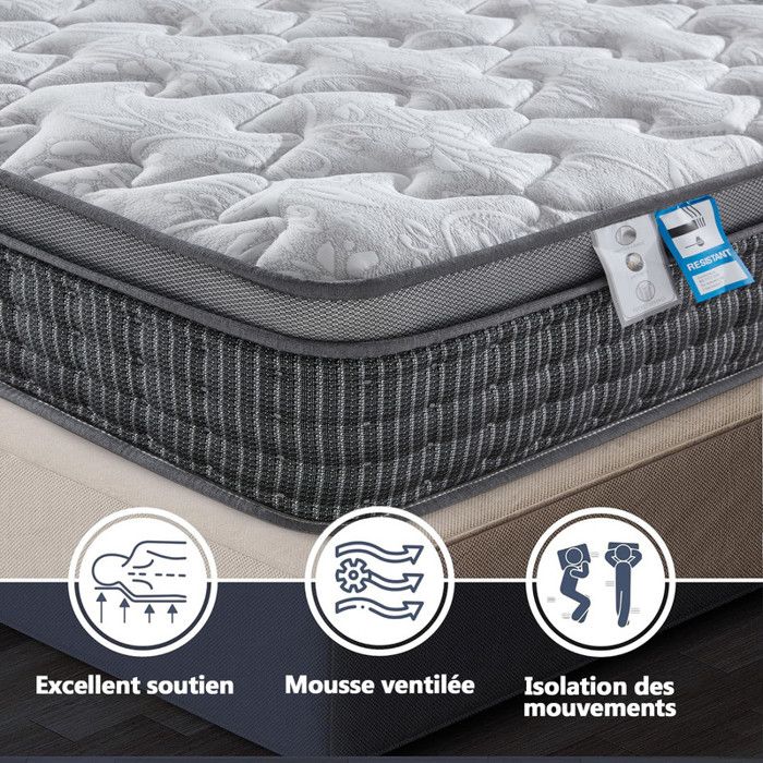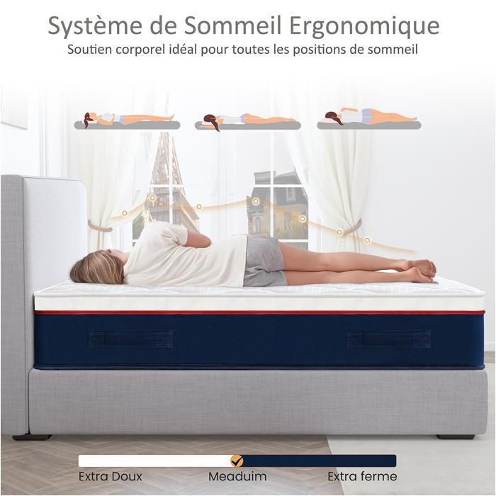 La structure ergonomique de la zone assure une position de sommeil naturelle - Idéal pour les personnes dormant sur le côté, sur le dos et les personnes souffrant de problèmes de dos., 2., Deux niveaux de fermeté en un seul matelas - H3 & H4 combinables : notre matelas 90x200 combine deux degrés de fermeté en un seul produit : H3 (moyenne) et H4 (ferme). Matelas 120 x 200 cm, hauteur 25 cm, à ressorts ensachés, H3 et H4, 7 zones, ergonomique et respirant, certifié Oeko-Tex, pour les personnes dormant sur le côté et sur le dos, 1., Matelas ergonomique à ressorts ensachés à 7 zones – Doux pour le dos et adapté avec précision : ce matelas à 7 zones avec ressorts ensachés s'adapte de manière ciblée aux épaules, au dos et aux hanches. Idéal pour les personnes allergiques, les enfants ou les dormeurs sensibles., 5., 100 nuits d'essai de sommeil - Testez le matelas sans risque : testez le matelas confortablement à la maison - avec 100 nuits d'essai de sommeil. Matelas Royal Exclusive Ressorts ensachés, 30cm - 160x200 cm Vous n'êtes pas satisfait ? Facile à retourner. PurrJoys Matelas 140 x 200 cm, Hauteur 25 cm, Ressorts ensachés H3 et H4, 7 Zones, Respirant, certifié Oeko-TEX, pour Les Personnes Dormant sur Le côté Matelas Ressorts Ensachés 160 X 200 Matelas à Ressorts Ensachés Paris, 7 Zones, Latex, 80 X 200 Cm, Hauteur Matelas Double Fermeté H3 H4 Découvrez le matelas à ressorts OKWISH de dimensions 160x200 cm epaisseur 25 cm cm. Ce matelas offre un soutien ferme grâce à ses 7 zones orthopédiques. Il est...