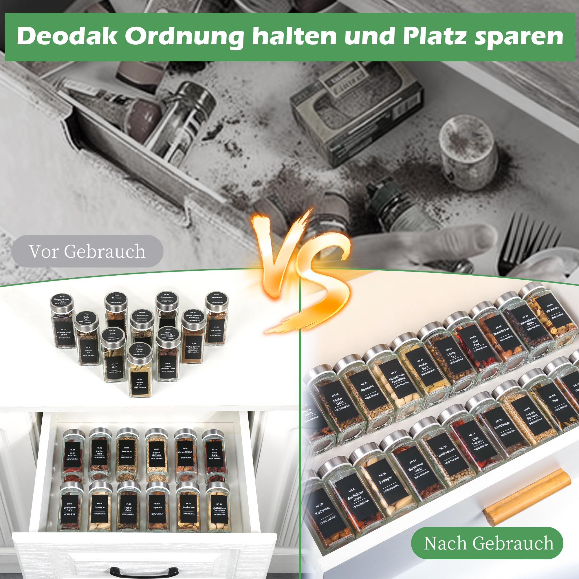Description du produit Lot de 12 bocaux à épices Lot de 24 pots à épices en verre de 120 ml avec couvercles, bocaux en verre carrés, petits pots à épices avec étiquettes, goupillon, stylo, entonnoir 3 tailles différentes de tamis Peut gérer différentes épices et contrôler la précision des épices Préparez des aliments délicieux Passe au lave-vaisselle et à la brosse La capacité de 120 ml est idéale pour stocker des épices, des herbes ou des mélanges d'épices etc. Pots à épices Verre Pot à épices En Verre Set 12 Pots à Épices Deodak 120ml - Bocaux Verre Hermétiques Avec Tamis, Étiquettes | Organisateur Cuisine Pots Avec Tamis étiquettes Pot épices 120 Ml Avec Tamis Le pot à épices a la taille parfaite, 10,5 x 4,5 cm, et peut être placé dans des tiroirs, des armoires et des étagères pour garder la cuisine bien rangée et organisée Contenu de l'emballage : vous recevrez 24 pots à épices carrés vides en verre, 24 couvercles en acier inoxydable, 210 étiquettes vides rondes et 168 rectangulaires, 1 stylo, 1 entonnoir pliable, 1 brosse de nettoyage et 30 filtres (3 tailles) pour un contrôle facile du dosage des épices. Applications Larges : Chaque pot à épices mesure 10,5 x 4,5 x 4,5 cm, parfait pour être placé sur votre étagère à épices. Le lot de bocaux à épices est parfait pour rendre chaque repas agréable Cexovo 24 Pièces Pot Epices Verre Carré 120ml Bocaux à Épices avec Bocaux En Verre Robustes : Nos bouteilles à épices sont fabriquées en verre épaissi de qualité alimentaire, sans plomb ni BPA, résistantes à la corrosion et incassables. Marque. FoiiLiio · Caractéristique du matériau. Sans BPA, qualité alimentaire · Capacité. 2880 Millilitres · Dimensions du produit. 38L x 26l x 12H centimètres