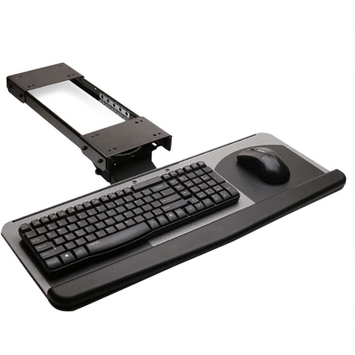 Mécanisme coulissant fluide : conçu avec un système de rail à glissement fluide, ce tiroir se glisse facilement et vous permet de ranger le clavier proprement sous le bureau lorsque vous ne vous en servez pas, aidant à gagner de l'espace précieux sur le bureau Support réglable : trois réglables pour une épaisseur de bureau de 8 cm. Ce support de clavier sous le bureau est doté d'un repose-poignet pour plus de confort et de stabilité. Il empêche le clavier de glisser lorsqu'il est incliné et permet des réglages faciles de la hauteur et de l'angle à l'aide d'un bouton, sans outils supplémentaires Notre plateau pour clavier de 68 x 28 cm peut accueillir la plupart des claviers, souris et autres objets, maximisant ainsi l'espace du bureau tout en améliorant le confort de frappe. Il s'agit d'un complément précieux à tout espace de travail, en particulier pour ceux qui passent beaucoup de temps à taper ou à travailler sur un ordinateur Design compact : le support compact sous le bureau maintient votre clavier facilement rangé, offrant une solution peu encombrante pour toute configuration, en particulier dans les petits bureaux ou bureaux à domicile Mount-It! Tiroir à Clavier Sous Le Bureau Avec Plate-forme De Souris Plateau Coulissant Facile A Glisser Sous Le Comptoir Pour Clavier Dordinateur 533 Cm De Large Noir Processus d'installation facile : équipé d'un matériel de montage simple et d'instructions faciles à suivre, le tiroir du clavier peut être installé en quelques minutes, offrant une configuration facile pour une utilisation rapide Construction robuste et durable : fabriqué à partir de matériaux de haute qualité, ce support de clavier est conçu pour résister à un usage quotidien, prenant en charge une variété de tailles et de types de clavier pour une expérience de frappe stable Tiroir Clavier Sous Bureau WaiMin Plateau Coulissant En Bois Pour Clavier Sous Le Bureau, étagère Coulissante Pour Clavier, Tiroir Réglable En Hauteur, étagères De Rangement Pour Clavier Et Souris (couleur : Noir Hauteur et angle personnalisables : ce tiroir à clavier réglable en hauteur et options d'inclinaison offre une expérience de frappe ergonomique, réduisant la fatigue du poignet et soutenant une position naturelle du bras pour plus de confort lors d'une utilisation prolongée Le mécanisme coulissant glisse en douceur pour vous permettre de ranger votre clavier sous le bureau lorsque vous ne vous en servez pas, ce qui en fait une solution pratique et peu encombrante pour n'importe quel poste de travail. Durable et simple à installer, ce plateau de clavier convient à diverses configurations de bureau, offrant un moyen compact de garder votre organisation et votre efficacité.