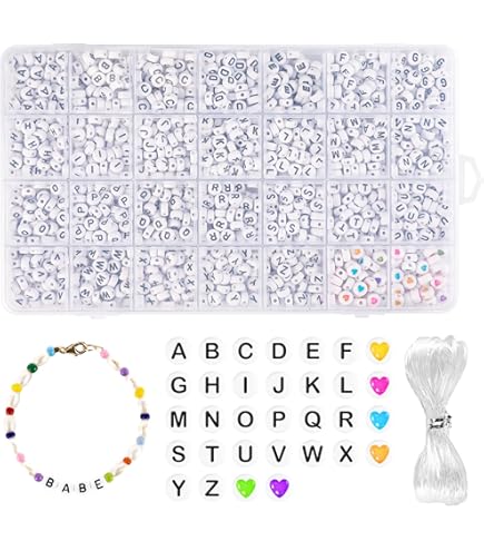 【Set completo di perline dell'alfabeto】queste perline sono composte da perline acriliche a forma di lettere dalla A alla Z con un diametro di 7 mm. Coffret de perles lettres pour réaliser des bracelets à message. Le coffret comprend 1200 perles de différentes couleurs de perles et de lettres : transparentes, mates, translucides colorées, noires, blanches, argentées ou dorées Dai libero sfogo alla tua immaginazione e crea una varietà di gioielli. 【Lavoretti creativi per bambini】 crea braccialetti e collane bellissimi e unici con le perline dell'alfabeto. 【Ampie applicazioni】Usa le perline con le lettere per creare bracciali e collane elastiche, fasce intrecciate, maniche in tessuto, cappelli, accessori per capelli e altri oggetti artigianali per creare creazioni uniche! Perles Cœurs Bijoux Personnalisés Relota 1400Pcs Perles Pour Bracelet 7 X 4 Mm, A-Z Blanc Perles Lettres Alphabet Et Colorée Coeur Beads Avec 2 Fil Elastique, Pour Fabrication De Bijoux, Bracelets, Colliers, Enfants DIY Artisanats Activité Manuelle Enfants Perles Lettres Ogni perlina ha dimensioni uniformi, una stampa chiara e bordi lisci e senza sbavature. I bambini dai 4 ai 12 anni devono essere supervisionati da un adulto. Combinale con una varietà di perline affascinanti per incidere nomi, benedizioni, messaggi significativi e regali creativi e unici per i tuoi cari. Hanno un diametro di 7 mm e uno spessore di 4 mm. CoKeeSun 1680 Pièces Perle Lettre A-Z, 7*4 mm Acrylique Ronde Il diametro del foro è di 1,5 mm. Lot de 2064 Perles en Argile pour Kit de Fabrication de Bracelets, Perles Plates pour Bracelet...