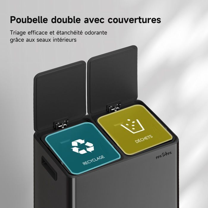 Poubelle De Cuisine Tri Sélectif 2 X 30L Métal Argenté 2 Seaux Amovibles Et Pedales En Metal 67d4058953fc79f94e5f32ff Poubelle Cuisine 2x30 Litres Acier Inoxydable Poubelle De Cuisine, 2 X 30 L, 2 Compartiments, Poubelle à Pédale Poubelle Double Satisfait ou remboursé, la poubelle arrive bien emballée et déjà montée Capacité totale 60 litres divisée en 2 bacs de 30 litres Les poignées intérieures du seau vous aident à les retirer 【Anti-Trace et Anti-Odeurs】Grâce à ses deux couvercles, les odeurs ne se mélangent pas. Maison - Découvrez notre offre mVm Poubelle de Cuisine,2 x 30 Litres,2 Seaux Amovibles,Acier Inoxydable,2 Compartiments, Poubelle Recyclage Rectangulaire à Péd30. Livraison gratuite à partir de 25€* | Paiement sécurisé | 4x possible | Retour simple et rapide Avec ses pédales, vous n’aurez même pas à la toucher pour trier vos déchets EN STOCK : Poubelle 2 compartiments 30l pas cher. Grand choix, promos permanentes et livraison rapide partout en France. Paiement sécurisé mVm:Notre service client est là pour répondre à toutes vos questions. idéal pour une poubelle de cuisine ou de tri sélectif