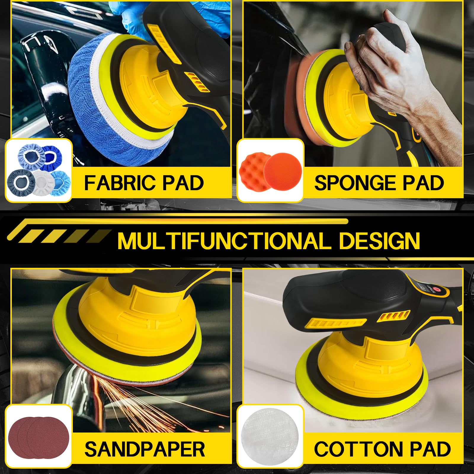 Écran LCD numérique : Cette polisseuse pour voiture est équipée d’un écran LCD affichant les niveaux de vitesse sélectionnés, vous permettant de garder le contrôle sur votre travail. Livrée avec 14 accessoires, elle est idéale pour le polissage et le cirage des voitures, ainsi que pour éliminer les bavures, bords rugueux, rouille et taches sur les surfaces métalliques. 8 VITESSES VARIABLESNotre polisseuse de voiture sans fil dispose de 8 réglages de vitesse, allant de 0 à 5 000 tr/min. La vitesse basse convient au cirage et au polissage, la vitesse moyenne au polissage et au nettoyage, et la vitesse élevée à l'élimination des défauts de peinture et de l'oxydation Sûr et facile à utiliser : grands trous d'aération pour le refroidissement, dissipation rapide de la chaleur, fonctionnement continu, prolongement de la durée de vie de la batterie et de la machine, polisseuse de voiture avec tampon de polissage, facile à monter et à démonter, convient pour le ponçage du bois, le polissage des détails... Elle dispose également d’un indicateur d’état de la batterie avec trois couleurs : vert, jaune et rouge. DeWalt DCM 849 D2 Polisseuse Excentrique Sans Fil 18 V 180 Mm Brushless 2x Batterie 20 Ah Chargeur 88694885 Large éventail d’applications : Le kit de polissage comprend 1 polisseuse sans fil, 1 tampon en mousse ondulé, 1 tampon en mousse plat, 1 disque en laine, 5 housses en tissu, 3 papiers abrasifs, 1 paire de gants, 1 tablier et 1 chiffon de nettoyage. Idéale pour polir et éliminer les tourbillons, rayures et imperfections sur toutes les surfaces peintes de véhicules. Spta Polisseuse Avhrit Mini Polisseuse Orbitale Sans Fil Avec 2 Batteries, 5 Vitesses Variables De 2500 à 6500 Tr/min Pour Ponçage De Détails De Voiture, Compatible Avec 2,5 Cm, 3,8 Cm, 5 Cm Polisseuse Sans Fil Plus besoin de traîner de longs câbles lourds — vous n'avez plus à craindre de rayer votre voiture avec un câble, de trébucher dessus, ou de combiner dangereusement électricité et eau. Compatible avec DeWalt les batteries 20V : Cette polisseuse est compatible avec DeWalt les batteries 20V DCB204-2, DCB206-2, DCB203, DCB204, DCB206, DCB207, DCB201, DCB200, DCB182, DCB181., Batterie et chargeur non inclus. Vous pouvez ajuster la vitesse en fonction des matériaux ou des tâches.
