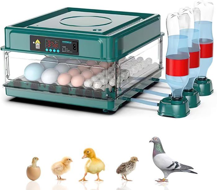 Il dispose également d'un système de surveillance et d'affichage en temps réel, ainsi que d'un humidificateur automatique. Couveuse Oeuf Automatique Janoel Incubateur Oeuf Automatique, 12 Oeufs Couveuse Automatique Numérique, Contrôle Intelligent Et Précis De Température Et Humidité, Appareil Incubateur Pour Éclosion De Poulet, Canards, Cailles, Pigeons Couveuse Double Alimentation 110V 12V (Veuillez apporter votre propre bouteille de Coca-Cola pour l'eau. Le mode d'incubation automatique ajuste automatiquement la température, tandis que le mode d'incubation manuel nécessite un réglage manuel. Largement utilisé : Cet incubateur est équipé de plateaux à œufs à roulettes à 360 °, réglables en fonction de la taille des œufs. Cette couveuse est livrée avec quatre plateaux de retournement (type C30 permettant l’incubation de tout type d’œuf) et 4 paniers d’éclosion. Chaque panier d’incubation dispose d’un moteur de retournement indépendant pouvant être mis en marche selon vos besoins ) Une pulvérisation manuelle des œufs sera nécessaire après l'éclosion. La source de lumière froide LED permet d'observer facilement le développement des œufs, vous aidant ainsi à surveiller le développement embryonnaire et à éviter les dommages causés par la chaleur causés par les sources lumineuses traditionnelles. Double protection : Cet couveuse oeuf est doté d'une double alimentation 110 V et 12 V, garantissant une incubation continue même en cas de panne de courant. 5 modes d'incubation au choix: Cet couveuse automatique est facile à utiliser et démarre l'incubation d'une simple pression sur une touche. Il peut incuber des œufs de poules, de canards, d'oies, de pigeons, de cailles et d'autres oiseaux, ce qui le rend idéal pour les fermes familiales, les écoles, les élevages d'animaux de compagnie et les petites entreprises d'aviculture. Il propose cinq modes d'incubation : poulet, canard, oie, pigeon et température constante, permettant aux utilisateurs de choisir selon leurs besoins. Couveuse oeuf automatique pour ufs d'oiseaux reproducteurs avec Automatische Contrôle de la Température, Retournement A2