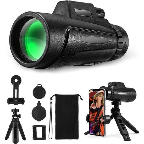 Le cache-objectif intégré est étanche à la poussière et à l'humidité, ce qui en fait un compagnon fiable pour la randonnée, le camping et les aventures sous la pluie. Parfait pour l'observation de la faune et de la flore, l'observation des oiseaux, la chasse, la randonnée, le camping, les voyages, les concerts et les matchs de football Caractéristiques: Système Optique HD 12x50 Imagerie professionnelle : lentille en verre optique + film vert multicouche FMC à large bande, transmission lumineuse augmentée de 98 %, champ de vision lumineux et sans reflets Super grossissement : avec un grossissement de 12x à 50x, il capture clairement les détails même dans l'obscurité (comme l'observation des oiseaux au crépuscule ou la nuit) Prise de Vue Facile Téléobjectif en quelques secondes : trépied antidérapant + support pour téléphone portable, prise de vue d'une seule main en 4K, résolution des problèmes de tremblements et de flou, capture facile de gros plans d'animaux sauvages, de scènes de concert et de la dynamique d'un stade (compatible avec la plupart des téléphones portables) Capacité de Combat par Tous les Temps Miroir rempli d'azote, antibuée et résistant à l'humidité, pour une aventure sans souci sous la pluie ou dans la jungle Cache-objectif intégré anti-poussière + cache-oculaire rétractable résistant aux chocs, pour une durabilité accrue en extérieur Conception Ergonomique Gomme rayée antidérapante + pouce Ergonomie optimisée, contrôle stable en escalade et à vélo, légèreté et légèreté. Portable et Confortable : Ce monoculaires est facile à transporter pour une expérience d'observation fiable. Compagnon d'aventure en Plein Air : Le telescope 12x50 est un équipement indispensable pour diverses activités de plein air, comme l'observation des oiseaux, les concerts, la chasse, les événements sportifs, etc. Le protège-oculaire rétractable protège efficacement contre les chocs. Spécifications : Couleur : Noir Taille : Comme le Montre la Figure Emballage Inclus: 1 x Monoculaire 1 x Trépied 1 x Support de Téléphone Portable 1 x Sac en Flanelle 1 x Chiffon de Nettoyage VIL Télescope monoculaire 12x50 12x50 télescope monoculaire 50mm Vision Claire Dans Tous les Environnements : Ce telescope monoculaire utilise un miroir rempli d'azote, résistant à la pluie, au brouillard et à l'humidité. Applications Polyvalentes Observation des oiseaux, concerts, chasse, jeux de ballon, alpinisme et voile. Leur couleur est vive et transparente, avec un motif mat sur le bord, réduisant efficacement la fatigue oculaire. Télescope Monoculaire Puissant - CHICHENG - 12x50 - Etanche - Avec... Télescope monoculaire Camping voyage Hd Fmc, miroir d'observation des oiseaux avec trépied, support de téléphone portable, observation des oiseaux acheter à prix bas - livraison gratuite, avis réels avec des photos Grossissement HD 12x50 : Nos monoculaire sont fabriqués en verre optique haute transparence et recouverts d'un film vert multicouche FMC à large bande.