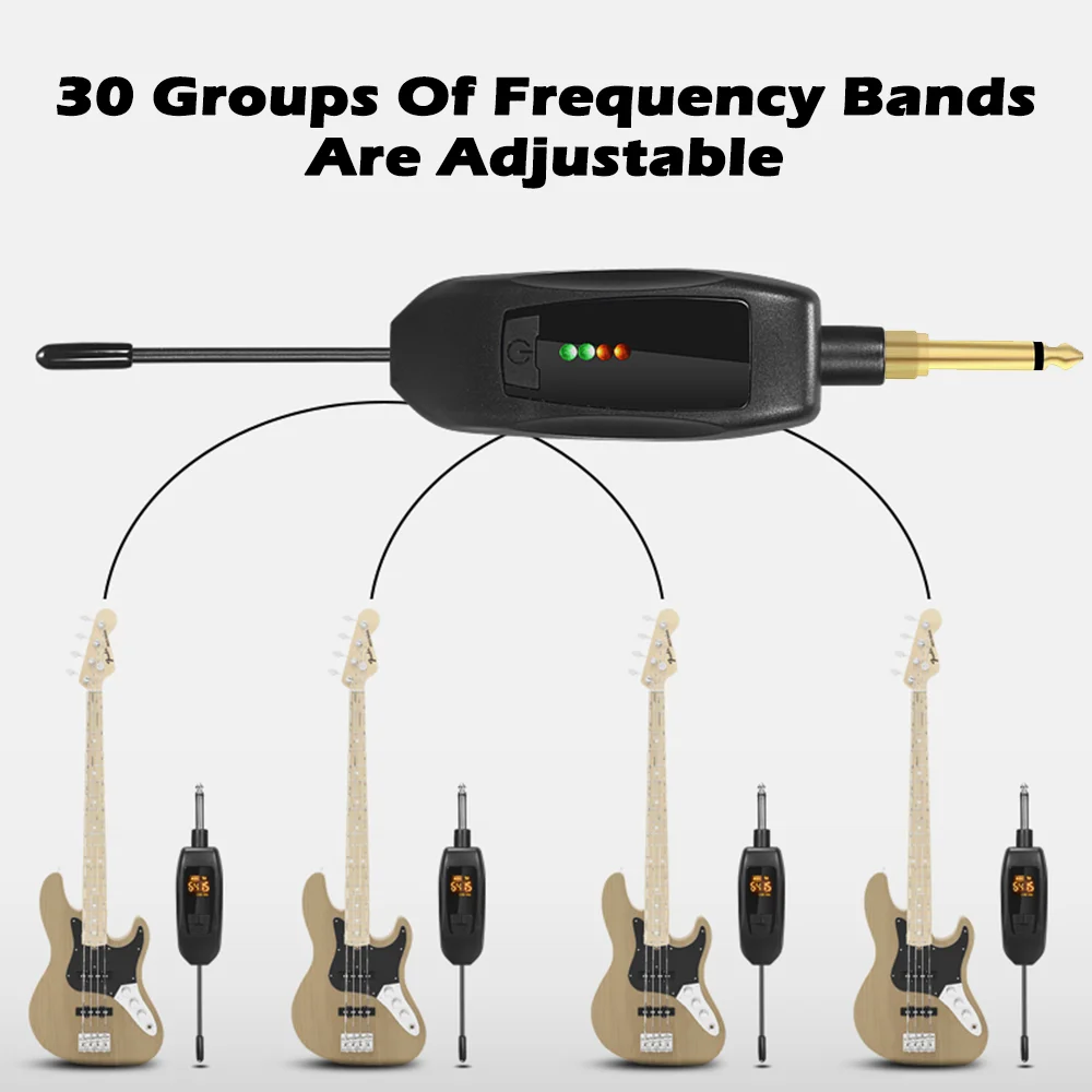 Mode anti-interférence : Verrouillage de fréquence Réponse en fréquence : 55 Hz-20 kHz Son design compact et léger le rend plus facile à clipser sur n'importe quel corps de guitare ou de basse. Batterie rechargeable Alimentée par une batterie lithium-polymère de 400 mAh, cette unité offre jusqu'à 6 heures d'autonomie continue sur une seule charge complète, idéale pour les longues répétitions, les concerts ou les séances d'enregistrement. Il est équipé d'une batterie lithium-polymère rechargeable intégrée de 400 mAh offrant jusqu'à 6 heures d'autonomie avec une charge complète. Idéal pour les concerts, les répétitions ou les sessions en studio. Fréquence d’échantillonnage : 48 kHz / Alimentation : Batterie lithium-polymère 3,7 V L'appareil se connecte automatiquement et la lumière s'arrête de clignoter et reste fixe lorsque l'appariement est réussi. Autonomie : 6-8 h / Temps de charge : ≤ 4 h / Tension d’arrêt : 3,3 V C'est le meilleur choix pour les guitaristes débutants et professionnels et les bassistes. Portée 30m Batterie Rechargeable SHAEVLE Système De Guitare Sans Fil 2,4 GHz Rechargeable - Émetteur émetteur Récepteur Guitare 2.4ghz Capture audio cristalline pour les créateurs de contenu avec une portée de transmission de 160 pieds, un design compact et une compatibilité universelle des appareils Facile à appairer : appuyez longuement pour allumer l'émetteur et le récepteur, double-cliquez sur le bouton d'appariement pour sélectionner le canal de la même couleur. Avec 2 émetteurs et 1 récepteur en fréquence 2,4 GHz, tu peux te déplacer jusqu'à 30 mètres sans perdre la qualité du son. Parfait pour les concerts live ou... Haute compatibilité : les fiches sont compatibles avec la plupart des guitares électriques, basses, guitares acoustiques et autres instruments de musique numériques, même pour saxophone électrique, l'appareil est approuvé pour une utilisation dans le monde entier. Batterie rechargeable longue durée - Alimenté par une batterie au lithium polymère de 2,7 V (unité de 6 BH), ce système offre jusqu'à 3,5 heures de temps de charge et une durée de lecture prolongée. Verrouillage de fréquence Maintient une connexion sans fil stable en se verrouillant sur un canal de fréquence dédié, garantissant des performances constantes même dans des environnements à signal dense. Test : système de guitare sans fil LEKATO Capacité de la batterie : 400 mAh / Dimensions : 112,5 x 32,5 x 16,2 mm Rapport signal/bruit : 90 dB / Sortie analogique : TRS 6,35 mm L'activation de la charge automatique assure une gestion de l'alimentation sans tracas. Paramètres Fréquence : 2400-2483,5 MHz / Profondeur de bits : 24 bits