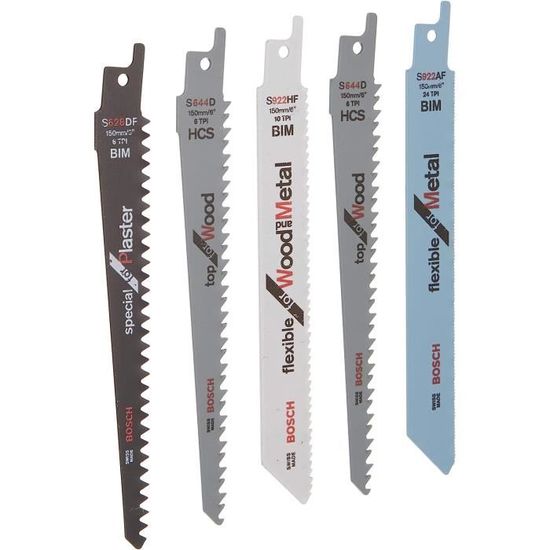 Large application : idéal pour couper du bois de chauffage, du bois vert, du bois tendre, des poutres, du bois grossier, du bois humide, du bois de chauffage, du bois vivant, du bois artificiel ou des tuyaux en plastique. Qualité supérieure et durable : nos lames de scie sabre sont fabriquées en acier au chrome vanadium de qualité supérieure. 5 lames de scie sabre « fast wood » 150 x 1,25 mm (628241000 Qualité supérieure et plus durable : nos lames de scie sabre sont fabriquées en acier au chrome vanadium de qualité supérieure. · Haute efficacité pour une coupe... Que ce soit pour le jardinage, l'atelier, le chantier ou les loisirs. Lames de scie sabre SM15018Bi L 150mm pour bois et métal - HANGER Emballage pour un rangement sûr : la boîte en plastique dispose d'un design de sécurité pour empêcher la lame de glisser et de se blesser accidentellement lorsqu'elle est ouverte avec force. Utilisation universelle : la lame de scie peut être utilisée avec la plupart des outils de scie sabre standard, compatible avec DeWalt, Bosch, Hitachi, Makita, Milwaukee Sawzalls, Black & Decker, Porter Cable, Skil, Ryobi, Hitachi, Metabo et plus encore. Lame Pour Scie Sabre Bosch Bosch S1111K HCS Lot De 2 Lames De Scie Sabre Pour Bois 1-2" 225 X 19 X Lames Bimétalliques Coupe Bois 【Haute efficacité pour une coupe sans effort】 Conception de dents avancées pour des coupes précises et fines, ainsi que pour des coupes rapides et grossières. Jeu de lames de scie sabre multi-usages FACIACC pour d'excellentes performances et une durée de vie plus longue Compatible avec la plupart des marques de scie sabre telles que Makita, Ridgid, Milwaukee, Porter & Cable. Caractéristiques : Lot de 6 lames de scie bimétallique 6TPI 150 mm Lot de 6 lames de scie bimétallique 5TPI 225 mm Coupe efficace Le kit de lames de scie sabre pour bois adopte la conception des dents abrasives et des dents de division, ce qui favorise une évacuation rapide des copeaux et améliore les performances de coupe.