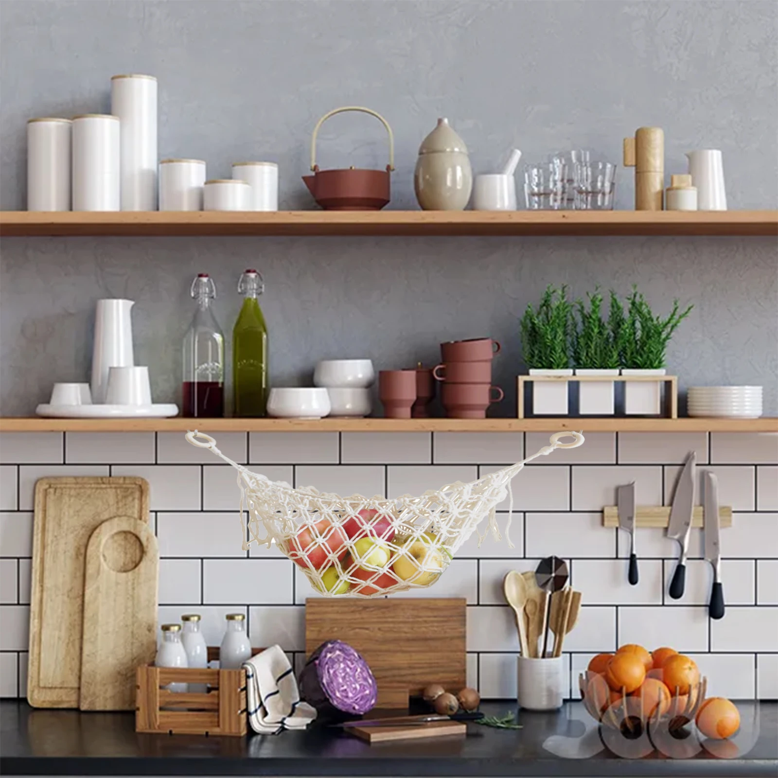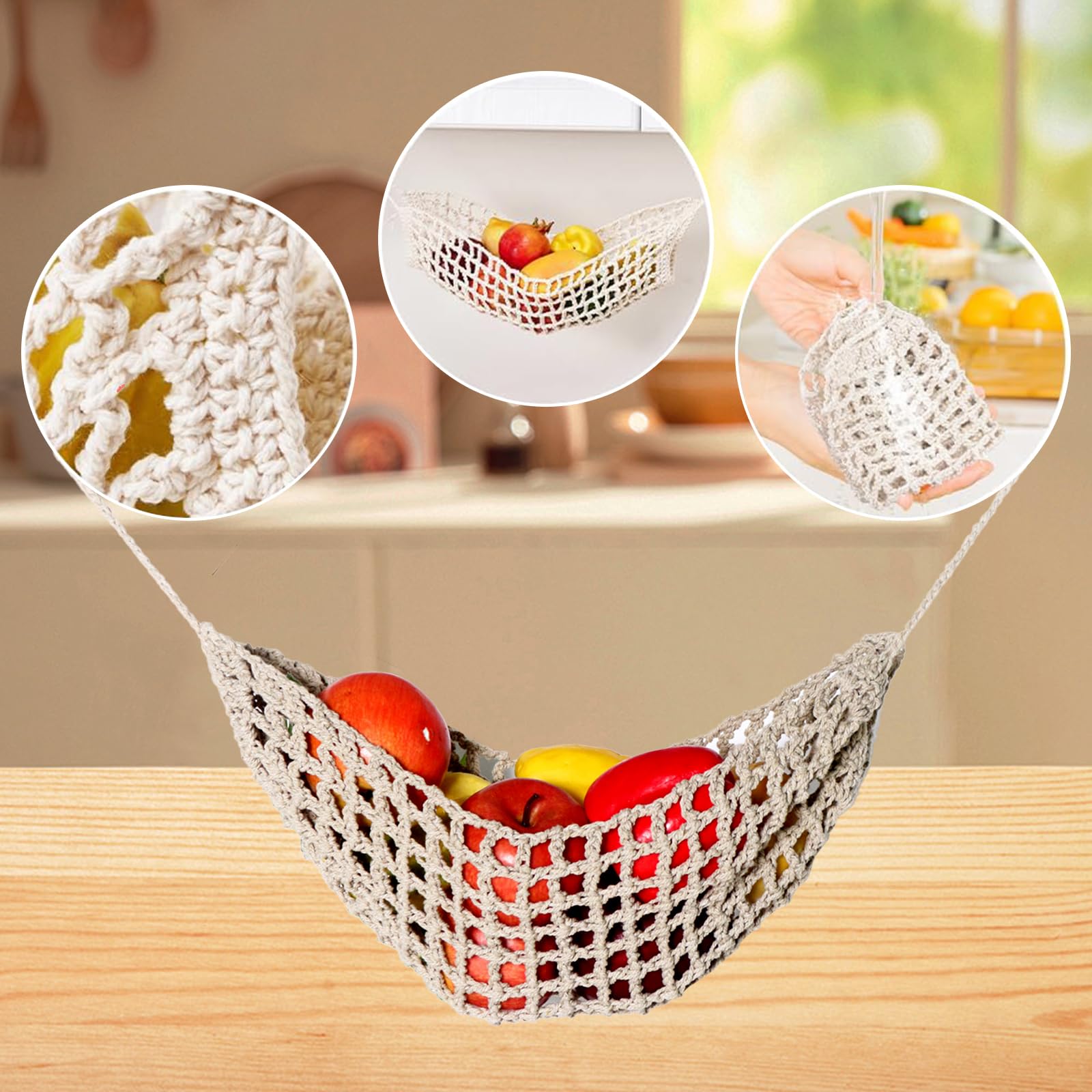 Hamac Tissé Main 65 Cm Macramé EJ.life Hamac De Fruits Hamac à Fruits Style Nordique Simple Fabriqué à La Main Pur Coton Hamac Structure Hamac Cadeau parfait : un super cadeau pour les amateurs de fruits et légumes, adapté pour Noël, les anniversaires ou les inaugurations. 2 Ensembles Panier Suspendu À Fruits Hamac À Fruits Hamac À Légumes... Hamac à uits tissé à la main en coton blanc, panier de rangement, filet de cuisine, décoration de poche, gain de place, maison ... Retour gratuit dans les 90 j avec des crochets métalliques de haute qualité (autocollants et à vis), il assure une suspension sûre hamac à fruits votre famille et vos amis vont adorer sa fonction pratique et décorative ! Panier à fruits suspendu à 3 niveaux, organisateur de porte, design le style macramé bohème ajoute une note rustique et élégante à tout intérieur facile à suspendre sous les armoires, les étagères ou sur les murs, il utilise efficacement l'espace vertical et libère les plans de travail de cuisine du désordre,parfait pour les petits espaces comme les cuisines, les appartements ou les campeurs 3., élégant et polyvalent,le style macramé bohème s'intègre parfaitement dans différents styles d'intérieur, sert non seulement de rangement pratique pour les fruits et légumes, mais aussi d'élément décoratif dans la cuisine, la salle de bain (pour ranger les serviettes) ou la chambre d'enfant (pour ranger les jouets). Spécifications : Couleur : blanc Nombre d'étagères : 4 Matière : coton Taille du produit : 65 cm/25., 59 in Contenu de l'emballage : Hamac De Fruits Garanti : Votre satisfaction est notre priorité absolue. Nous vous offrons de tout cœur un service de qualité Si vous avez des questions sur le produit, contactez-nous. pas besoin d'outils compliqués - prêt à l'emploi ! Facile à Installer : choisissez l'espacement approprié entre les crochets en fonction de votre profondeur préférée, fixez-les à l'endroit souhaité (autocollant ou vissé) et accrochez le tapis. avec les crochets fournis, facile à installer, prêt à l'emploi !