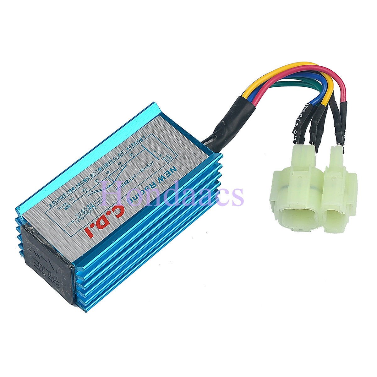 Bobine d'allumage CDI pour Gy6 50 CC 125 CC 150 CC ATV scooter moped dirt bike go kart. Ashata allumeur de moto Boîte d'allumage 12 V CDI adaptée pour moteur 4 EN STOCK : Nouvelle bobine d'allumage Racing Performance Cdi bougie d'allumage pour Gy6 150cc 125cc 50cc, QE-15461 pas cher. Livraison rapide partout en France La bobine augmente l'efficacité de la combustion et améliore les performances électriques. Modèles applicables : la plupart des types de scooters chinois, ATV, go karts et moteur Gy6 50 cc 125 cc 150 cc. 6 broches Super Racing Performance CDI bobine d'allumage bougie d'allumage pour scooter Gy6 50cc 125cc 150cc Il s'agit d'un CDI de course haute performance pour les moteurs GY6 50cc, 125cc et 150cc 139QMB, 152QMI et 157QMJ. 6 broches, ce CDI fonctionne avec la prise de type GY6, avec un système d'allumage CA Il s'agit d'une bobine d'allumage CDI de course haute performance basée sur le moteur GY6., Il suffit de le brancher à une source d'alimentation et il peut être facilement installé sur le moteur. Le boîtier CDI a une prise à 6 broches avec un système AC pour éliminer la limitation de vitesse. Moto Cross 125cc Bobine D'allumage CDI - Système D'allumage Pour Pour 50CC 125CC 150CC