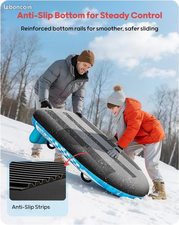 Luge Tube à Neige Enfants Adultes Valves étanches COSTWAY Luge Bouée Gonflable De 132 Cm, Traîneau à Neige Robuste En Housse Oxford Avec Poignées Traîneau Pneumatique Capacité 227 Kg Léger mais durable, ce tube à neige QPAU s'adapte parfaitement dans un coffre de voiture et est toujours prêt pour la prochaine aventure enneigée. Luge gonflable Pumpslide: notice, réparation Ce design bien pensé rend le tube à neige gonflable QPAU plus pratique que les luges traditionnelles. Gonflage rapide et valves étanches Le fond a des pistes antidérapantes qui améliorent la stabilité sur les collines glacées, vous donnant des promenades plus lisses et plus sûres à chaque fois. Plus qu'un simple jouet de neige, c'est un cadeau de vacances attentionné qui rassemble les familles, créant des souvenirs d'hiver durables. Luge à neige - Heavy Duty Toboggan Sleigh - Planche antidérapante Profitez des heures de plaisir sans souci avec l'un des meilleurs tubes à neige robustes pour la luge. Parfait pour les familles qui veulent faire l'expérience de glissades rapides et fluides sur les collines enneigées. Circuits plus sûrs avec dossier et poignées : contrairement aux tubes à neige ordinaires, cette luge à neige avec housse dispose d'un dossier de soutien et de poignées latérales renforcées pour une prise en main sûre. Idéal pour les parents et les enfants qui veulent des sensations fortes en toute tranquillité sur les pistes. Les cyclistes peuvent se pencher confortablement tandis que les débutants bénéficient d'une stabilité supplémentaire. Le design à double joint empêche les fuites, tandis que la jauge transparente incluse assure une installation parfaite. Les parents peuvent remorquer confortablement leurs enfants, économisant de l'énergie pour des trajets plus amusants. Les tubes à neige QPAU pour enfants et adultes transforment chaque après-midi d'hiver en une aventure pleine de joie et de rire.