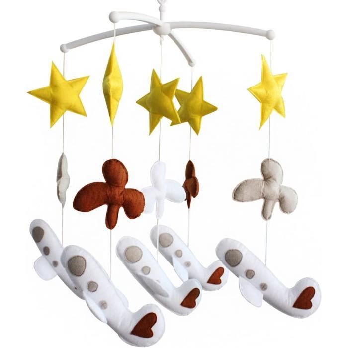 Matériaux de haute qualité et sûrs : fabriqué en tissu doux respectueux de l'environnement, doux pour la peau et ne libère pas de substances nocives, assure un environnement sûr pour les jeux et le sommeil. Remarque : 1., En raison des effets de l'éclairage pendant la prise de vue et des différents réglages de l'écran, les couleurs du produit sur l'image peuvent différer légèrement de la couleur du produit livré., Merci !, 2., Les mesures étant prises à la main, les tailles indiquées peuvent varier de 1 à 3 cm. Favorise le développement sensoriel : les motifs variés stimulent l'imagination du bébé, favorisent la perception visuelle et la motricité de la poignée manuelle pour favoriser le développement cognitif et physique. Mobile Bebe Jungle - Cadeau de naissance décoratif et sensoriel Accrochez la cloche de lit mobile ours à la fenêtre ou à la tête du lit pour capturer les traces de la brise et rendre la vie un peu plus amusante. Découvrez la cloche de lit Mobile Bébé : un accessoire magique pour apaiser et émerveiller votre tout-petit. Stimule le développement, réduit les pleurs et favorise un sommeil paisible. La solution idéale pour le bien-être de bébé et la tranquillité des parents Mobile Couleurs Douces Décoration Chambre Nouveau-né Mobile Bébé En Bois Et Feutre - Éléphant, Girafe, Lion - 52cm - Mobile Musical Lit Bébé Mobile Musical Suspendu Apaisante, aide à s'endormir : avec des couleurs douces et des personnages mignons, la cloche de lit de bébé apaise le bébé, soulage l'anxiété et favorise un sommeil paisible, idéal comme compagnon pour s'endormir