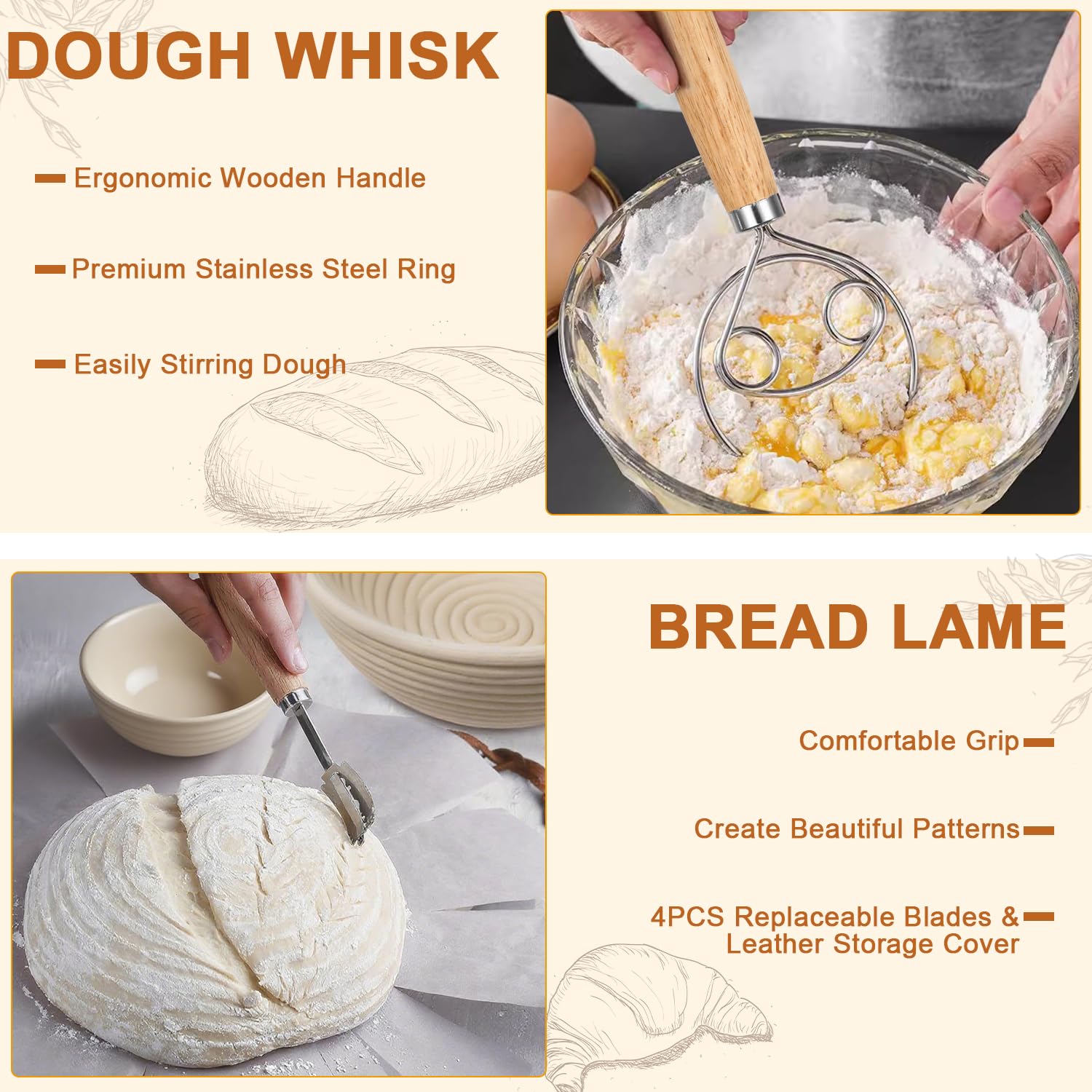 Panier Fermentation Naturelle Diealles Set 3 Bannetons Pain Ovales - 23,25,28cm - Rotin Naturel + Lame + Grattoir - Pour Boulangerie Maison Panier Rotin Boulangerie Kit Fabrication Pain Maison Clheatky Banneton Rond 25 Cm, Panier Fermentation Pain Set Compris 16 Pièces Fabrication Pain Ce kit de cuisson du pain entièrement fonctionnel et joliment emballé est également le cadeau parfait pour vos amis et votre famille ! Banneton Rond pour Pain 23cm, Panier Fermentation Pain Set avec Grattoir à Pâte, Mélangeur à Pâte, Lame à Pain, Idéal Set de Paniere a Pain pour les Pains et Levains , Accessoires Pain Maison 【Panier de fermentation de haute qualité en rotin naturel】. Rotin biologique et naturel - Panier de fermentation artisanal en rotin de qualité supérieure, sans poudre ni revêtement chimique. L'assemblage est impeccable pour une structure parfaite et de magnifiques motifs circulaires sur le pain pendant la fermentation Robuste, sans moisissure, sans odeur & sans produit chimique avec une surface lisse (pas de dommage pour les mains) ; antiadhésif & respirant, idéal pour le maintien de la forme, une fermentation stable et une croûte croustillante - pour une cuisson à domicile saine et délicieuse. Nos panière à pain en rotin sont fabriqués à partir de rotin naturel pur, sans colorants ni additifs chimiques, ce qui garantit la pureté et l'absence d'odeur de chaque panier, pour que vous ayez l'esprit tranquille lors de votre parcours de boulangerie 【Un cadeau parfait】Que vous soyez débutant ou professionnel de la fabrication du pain, ce kit de cuisson du pain vous offrira une expérience de cuisson agréable et satisfaisante. 【Set de cuisson complet】9 pouces/23cm panier de fermentation rond, doublure en lin, tapis de cuisson , fouet à pâte, racloir à pâte, grattoir à bol, outil pour couper le pain avec 4 lames, pinceau en silicone, poussière de farine, brosse de nettoyage, 16 pièces de gabarits de cuisson vous pouvez facilement former la pâte, la couper et décorer la surface.