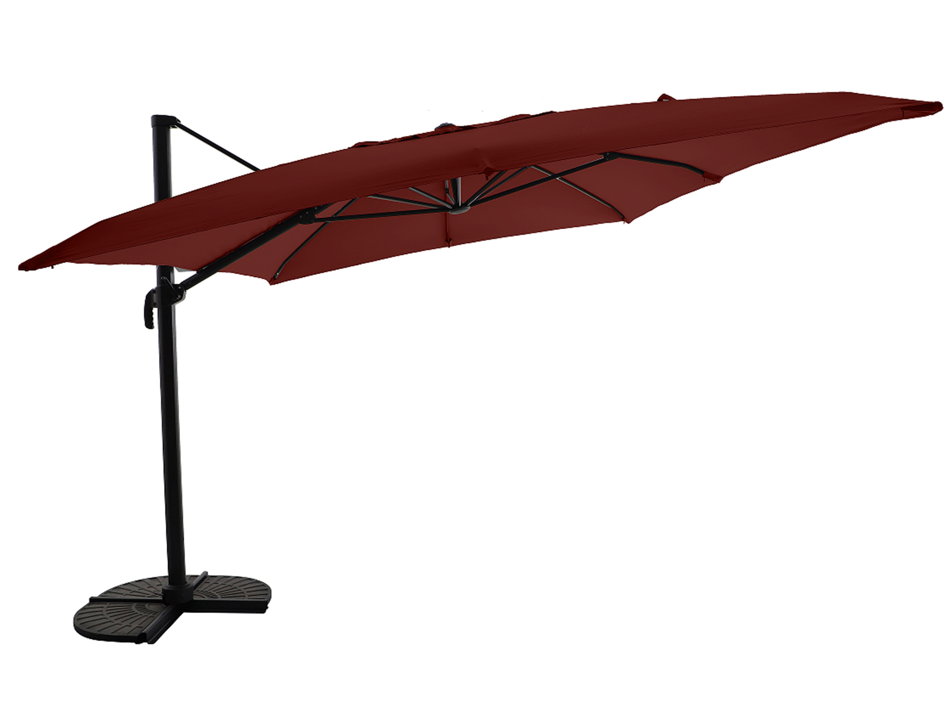 Parasol Terrasse Parasol Déporté Octogonal Inclinable Acier époxy Polyester Marron Maisons Du Mon Parasol Déporté Inclinable Pratique pour garder le soleil hors de tes yeux, que tu sois en fête, en repas de famille, ou juste en train de te relaxer. Palatino terracotta : Parasol déporté, carré de 3x3m , rotatif à 360 Ce grand parasol déporté en terracotta fait vraiment la différence pour ton confort et ton style dehors. C'est le choix idéal pour les balcons ou les patios, te donnant plein d'ombre et un look moderne qui sublime n'importe quel espace extérieur Il te protège du soleil tout en étant super beau avec son design sleek et sa finition en poudre résistante plus une housse en polyester qui bloque les UV. Comme elles fonctionnent à l'énergie solaire, elles sont écolos et te font faire des économies, rendant tes soirées aussi cool que tes journées. Parasol déporté en Aluminium de couleur Brun Tu peux ajuster la hauteur pour avoir la bonne couverture contre le soleil, rendant tes moments à l'extérieur bien plus agréables. Couleur: Couleur terre cuite Dimensions globales: 294 x 294 x 248 cm (L x l x H), Inclinable, Solaire Contenant de la livraison: Finition résistante à l'eau Imagine-toi en train de profiter de moments sympas sous son ombre, rendant n'importe quel coin ou patio vraiment spécial. Si tu cherches à allier style et fonctionnalité, ce parasol est fait pour compléter ton extérieur. Canopy material:Acier peint par poudre