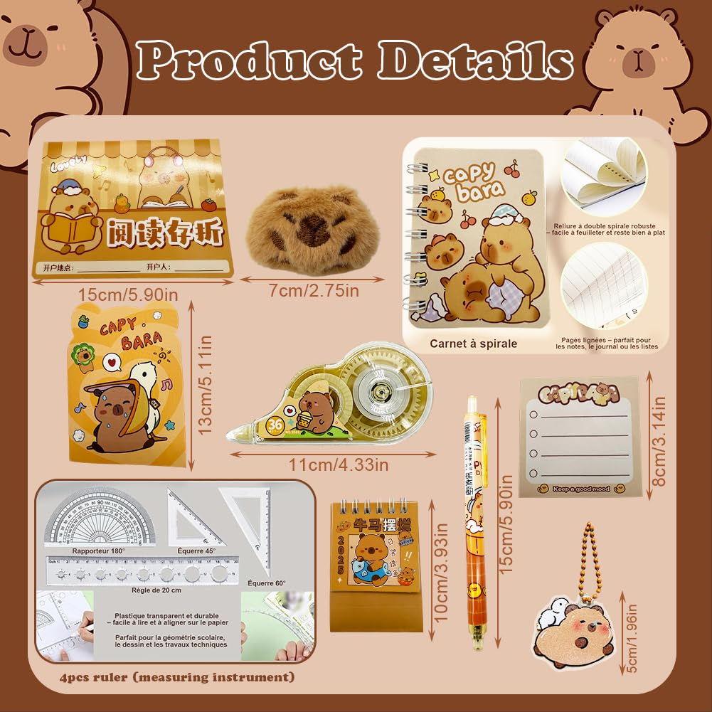 Les enfants peuvent également utiliser des autocollants, des pendentifs et d'autres accessoires pour décorer le livre de manière créative et partager une inspiration unique en matière de design. Le produit comprend : 1 pièce* Seau en papier orange 1 pièce*poupée en peluche 1 pc*pendentif 1pc*Livre de bobines A7 1pc*Livre de la ligne de voiture A7 1pc*Carnet de notes 10 pcs*Autocollants 1 set*Calibres 1pc*stylo neutre 1pc*ruban correcteur 1 pc*petit calendrier de bureau 1 pc*Carte de lecture Taille : 18*16*16cm Le set de papeterie Capy-bara comprend un seau à papier orange, une poupée en peluche, une breloque, un carnet à spirales A7, un carnet de notes A7, un bloc-notes et d'autres articles de papeterie, qui peuvent tous être rangés dans le seau à papier, ce qui permet de l'emporter facilement à l'école ou en voyage. Le tout peut être facilement transporté. Kit de Papeterie Capy-bara, Fournitures Scolaires Papeterie Capybra CONVIENT POUR TOUTES LES OCCASIONS : Le set de papeterie cartoon peut être utilisé à l'école, au bureau ou en voyage, et le design ludique de la papeterie Capybra ne manquera pas de faire une impression durable dans n'importe quel contexte. Wood style - stylo-bille 4 couleurs et ruban correcteur Bic - Intermarché Ensemble Papeterie Capybara Kit De Papeterie Capy-bara, Capy-bara Ensemble De Papeterie, Trousse De Cadeau Capybra, Inclut Ruban Correcteur, Stickers, Stylo, Bloc-Notes, Pendentif Et Peluche Décorative, Orange Cadeau Original Enfant Cadeau idéal : cet ensemble de papeterie Capybara constitue un cadeau attentionné, parfait pour toute occasion. L'ensemble combine parfaitement fonctionnalité et attrait esthétique, ce qui en fait un excellent cadeau pour les étudiants, les enfant ou toute personne qui apprécie l'art de l'écriture