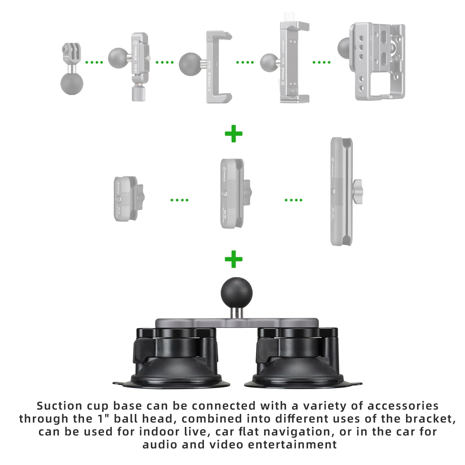 Support Universel Boule 1 Pouce FANAUE Support De Téléphone Universel Pour Voiture – Ventouse En Gel Collant Robuste Avec Boule De 25 Mm, Support De Téléphone Compatible Avec La RAM De 2,5 Cm Pour Pare-brise, Tableau De Base Ventouse Boule 1 Pouce La ventouse convient à une utilisation sur des surfaces lisses et sur le pare-brise de voiture. Le support voiture universel WIND Car est réglable et s'adapte à tout type de smartphone. Doté d'un système à 360°, il vous permet de trouver l'angle de vue... Poignée double ventouse Gecko Dosh avec adaptateur - charge 50 kg Il est possible de remplacer les accessoires selon les besoins, adaptés à divers scénarios tels que les motos, les vélos, les caméras d'action GoPro, les téléphones portables en voiture, les tablettes en voiture, etc. 【Spécifications du produit】 Référence: SC-02 Taille de la ventouse : diamètre de 3., 3 pouces Taille de la sphère : B-type (1 pouce) Matériau : Aluminium / Matériau composite haute résistance Type de conditionnement : Boîte en papier kraft Neewer Kit de Support de Voiture à Double Ventouse avec Bras Magique à 【Compatibilité étendue】Équipé d'un adaptateur sphérique de type B d'un pouce, compatible avec d'autres marques telles que RAM MOUNTS, offrant ainsi plus de choix et de flexibilité. Liberté de combinaison pour une adaptation à tous les scénarios Découvrez la polyvalence ultime avec la base à ventouse FANAUE SC-02., Conçue pour offrir une adaptabilité sans pareille, cette base à ventouse peut être utilisée dans une variété de scénarios, de la moto au vélo, en passant par les caméras d'action GoPro, les téléphones portables en voiture et les tablettes en voiture. Vous pouvez facilement connecter divers accessoires tels que des supports de téléphone et des supports de caméra pour répondre à différents besoins d'utilisation. 【Liberté de combinaison, adaptabilité à divers scénarios】La marque FANAUE se concentre sur la simplicité et la créativité, offrant une grande liberté de combinaison des produits. Optez pour la polyvalence et la fiabilité avec la base à ventouse FANAUE SC-02., Commandez dès maintenant et explorez de nouvelles possibilités. 【Réutilisable】Lorsque la ventouse devient sale et que la force d'adhérence diminue, il suffit de la nettoyer à l'eau et de la sécher pour restaurer son adhérence, facilitant une utilisation répétée et économisant ainsi des coûts. Que ce soit les vibrations du moteur ou les cahots de la route, le support de voiture reste solidement en place et ne tombe pas. Compatibilité étendue pour une utilisation polyvalente Dotée d'un adaptateur sphérique de type B d'un pouce, cette base à ventouse est compatible avec une multitude de marques, offrant ainsi une flexibilité inégalée.