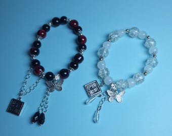 Ils sont également de merveilleux cadeaux spéciaux pour vous-même, vos amis, vos proches Taille : le bracelet est élastique et convient à toutes les tailles de poignet. Large application : les éventails délicats sont parfaits pour décorer un mariage, danser, embellir les murs, les cadeaux de fête et plus encore. Marque-page Laiton Bracelet Verre Heaven Official's Blessing Jewelry Sets Hua Cheng Collier Best Friends Bracelet Anime Acrylique Stand Décoration Tian Guan Ci Fu Marque-pages Avec Autocollants 15 Pièces, Métal, Pas De Gemme Heaven Official's Blessing Merchandise Contenu de l'emballage : 1 éventail pliable à main creuse, 1 marque-page en forme de figurines, 1 bracelet Xie Lian, total : 3 pièces. Matériau Comme différents ordinateurs affichent différentes couleurs, merci pour votre compréhension, la couleur du produit réelle peut être légèrement différente de l'image Zaky Heaven Official's Blessing Cosplay - Juego de joyas
