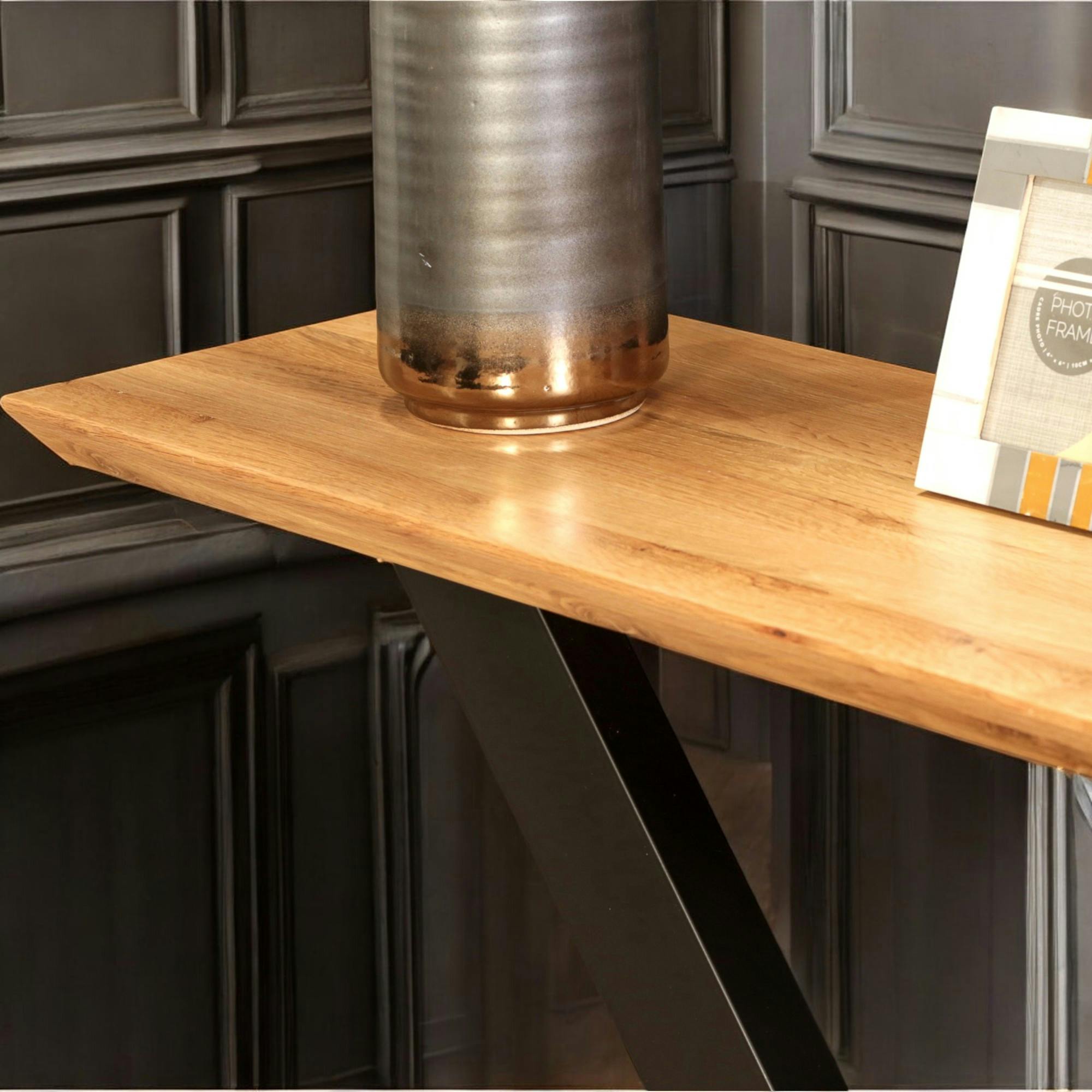 Compacte mais élégante, elle offre un équilibre parfait entre esthétisme et fonctionnalité, faisant d'elle une pièce phare de votre décoration intérieure. Polyvalente et peu encombrante, elle s'intègre facilement dans tout type d'espace. IDMARKET Console AUSTRIA bois pied épingle - Maison Apportez une touche d’élégance contemporaine à votre intérieur avec cette console VICKY plateau bois et pied croisé noir au design unique et raffiné. Parfaite alliance entre chaleur du bois et modernité du métal noir mat, elle sublimera aussi bien une entrée qu’un salon, une entrée ou même un bureau Son piètement asymétrique en V bois et métal crée une allure unique et raffinée Console industrielle 1 tiroir 2 étagères bois et métal - WAYNE | ID Market Profitez de son plateau (longueur 90 cm) pour disposer vos objets déco ! Avec son format astucieux, elle servira de meuble d'appoint pour chambre, bureau, entrée, salon ! Meuble D'appoint Métal Noir ID MARKET Console VICKY Plateau Bois Et Pied Croisé Noir Console Assemblable Style Industriel Que vous l'utilisiez comme console d'entrée pour poser vos clés et objets décoratifs, comme meuble d'appoint derrière un canapé, ou même comme bureau compact, elle saura répondre à vos besoins tout en apportant une touche design à votre pièce. Cette console se distingue par son piètement original en V asymétrique, un détail audacieux qui attire le regard et confère à l'ensemble un caractère résolument moderne. Le mariage du panneau coloris bois et du métal noir crée un contraste harmonieux et tendance, idéal pour un intérieur au style industriel chic ou contemporain.