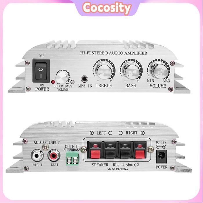 Réglable : en utilisant l'amplificateur de caisson de basses, vous pouvez régler le son de la musique selon vos préférences. Installation facile Il peut y avoir une légère erreur en raison de différentes mesures manuelles. Amplificateur Sonore Voiture Pour Amplis De Voiture Amplificateur De Voiture Stéréo 12 V, 3800 W Amplificateur De Puissance Audio 2 Canaux 12 V Noir En Alliage Daluminium Voiture Hifi Ampli Stereo 88460897 Ampli Voiture Subwoofer Couleur: argent, noirTension : 12 V. Large application : l'ampli de puissance stéréo est conçu for être universel et convient à tous les types de voitures. Installation facile : cet accessoire audio for véhicule est de petite taille et peut être installé sous le siège de la voiture. Electronique Pour Voiture - Amplificateur Puissance Audio Stéréo 12v 2... 2000W Amplificateur hifi de Puissance Amplificateur bluetooth Home Note:Il peut y avoir quelques distorsions de couleurs dues aux différentes résolutions de l'ordinateur. Matériau : cet amplificateur de voiture à 2 canaux utilise un alliage d'aluminium comme matériau, qui est , résistant à l'usure et difficile à casser. Puissance à deux canaux: 2x60W, 2x50W.