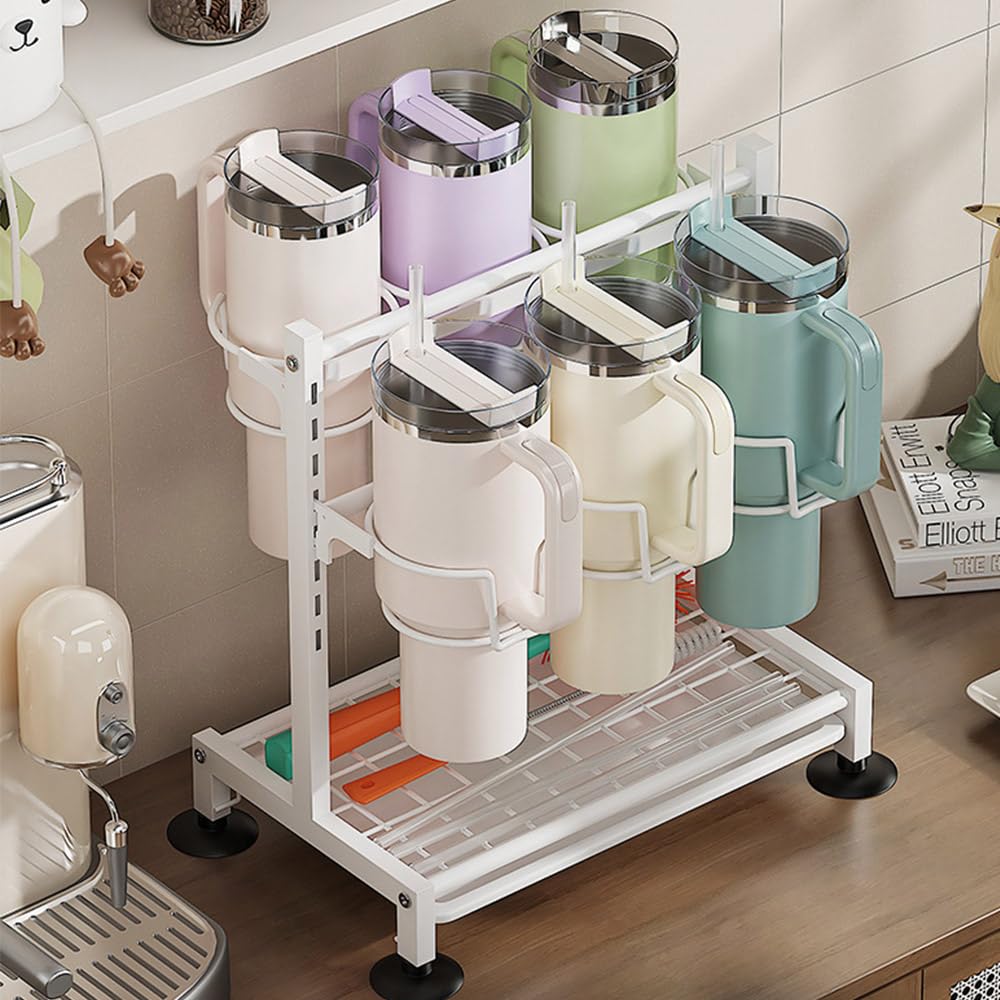 Porte Bouteille Stanley Avec Plateau égouttage Wotendy Egoutoire Vaisselle Avec Plateau D'égouttement, Égouttoir Accessoires Stanley Pratique et élégant : Ce organisateur de bouteille d'eau pour stanley est pratique et élégant. Elcoho Lot de 200 d'irrigation d'égoutteent Support 6 1/10,2 c Tube... Design rotatif] Grâce à son design rotatif unique, l'organiseur de gobelets Stanley permet d'accéder facilement à vos boissons en faisant simplement pivoter le porte-gobelet à 6 anneaux Avec un support de séchage de bouteille détachable qui peut contenir des couvercles, des pailles et des fournitures de cuisine, la collecte de l'eau pour garder les articles secs est facile à nettoyer pour une durée de vie plus longue. Simple et élégant, il s'intègre parfaitement à la décoration de la cuisine. Organisateur D'Ustensiles Pour Évier Gamme Premium, Plateau D Le support pour bouteilles d'eau est équipé d'un plateau d'égouttage, facile à nettoyer, afin que le plan de travail de la cuisine soit toujours sec et propre. Avec bac d'égouttage Avec 4 ventouses antidérapantes sur le fond pour assurer la stabilité. Il est également compatible avec d'autres bouteilles d'eau de 40 oz, telles que Owala 40 oz, Simple Modern 40 oz, Soufull 40 oz, etc. Facile à ranger et à récupérer Design unique : Notre organisateur de bouteille d'eau pour stanley , la bouilloire peut être placée debout, facile d'accès, après le lavage, mise à l'envers, facile à égoutter rapidement. Robuste et stable : Le organisateur de bouteille d'eau pour stanley est fabriqué en acier au carbone, avec 4 ventouses antidérapantes sur le fond pour assurer la stabilité sur les plans de travail lisses, et un gobelet rempli d'eau ne s'inclinera pas même s'il est placé de manière asymétrique. Le fond est équipé d'une grille d'égouttage et d'un bac de récupération.