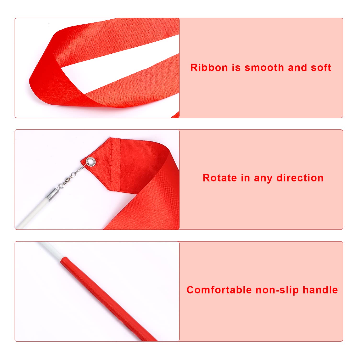 La poignée en plastique est confortable, antidérapante et durable, offrant une prise en main agréable pendant les performances. 【Dimensions Idéales】 : Chaque ruban mesure 2 mètres de long, tandis que les bâtons de rotation font 29 cm. Baguettes & Rubans - Gymnastique Rythmique - Page 4 sur 4 - International Type: Rubans avec bâton Matériel: Tissu (Ruban) Métal (Bâton) Longueur totale du ruban: 4m/157.48 » (Environ.) Largeur du ruban: 4,5 cm/1,77 po (Environ 【Utilisations Multiples】 : ruban grs enfant Idéaux pour la danse artistique, la gymnastique et comme accessoires décoratifs, ces rubans permettent de mettre en avant votre talent. Ruban de gymnastique artistique en polyester de 4 m - Pour danse rythmique - Pour enfants Ils sont parfaits pour les spectacles et les entraînements. 【Cadeau Parfait pour les Enfants】 : Avec leurs couleurs vives et leur design attrayant, ces rubans sont un excellent choix de cadeau pour les anniversaires ou Noël. Rubans Gymnastique 2 Mètres 4PCS RUBANS DE Danse, 2m Gymnastique Rubans De Danse Rythmique Bâton Gims Ninao 【Matériaux de Qualité Supérieure】 : Fabriqués en satin de haute qualité, ces rubans ne s'emmêlent pas facilement. Parfaitement dimensionnés pour les spectacles de danse, ils offrent une prise en main confortable et sont faciles à utiliser. 【Ensemble complet de rubans】 : Cet ensemble contient 2 rubans flammes et 2 rubans arc-en-ciel avec poignées rouges.