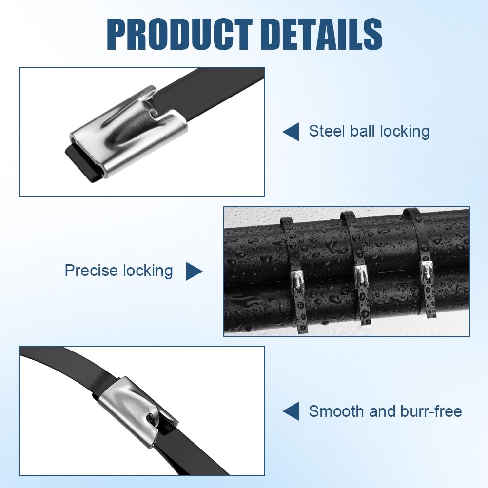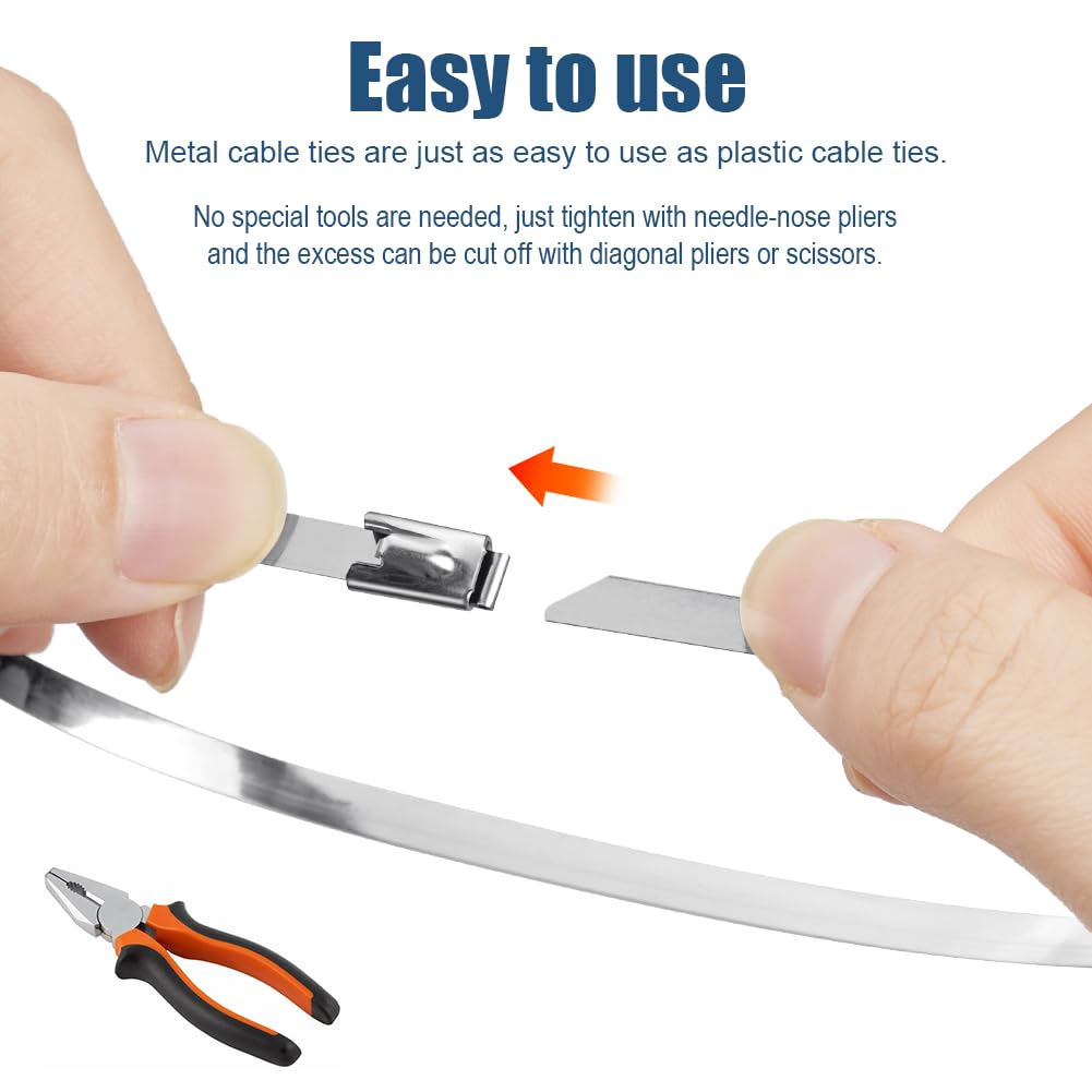 Robuste et durable, elle offre une longue durée de vie., 2., Adaptée à une large plage de températures, elle s'adapte aux températures élevées et basses et supporte des charges importantes., 3., La conception unique de la tête de verrouillage permet de verrouiller fermement l'objet enroulé. Il convient aux communications électriques, à l'ingénierie d'éclairage, aux navires maritimes, aux équipements énergétiques et aux industries du transit ferroviaire. Il peut également être utilisé pour regrouper les tuyaux, les clôtures et les câbles domestiques Son utilisation est simple : il suffit d'insérer l'extrémité du collier de serrage en position de verrouillage et de le serrer., 4., Chaque bord est poli et lisse pour protéger vos mains des rayures. De plus, ils offrent une large plage de résistance aux températures et conviennent aux environnements à basses et hautes températures. Large gamme d'utilisations : Ces serre-câbles sont polyvalents, du bricolage aux applications professionnelles, des basses aux hautes températures, et conviennent aux machines, véhicules, aménagements de jardin, bâtiments agricoles, câbles, tuyaux, toits et sous-sols. Collier Autobloquant Métallique HOTUT Collier De Serrage Métallique 300 × 4,6mm, 50 Pièces Attache Collier De Serrage Inox Plus la tension est élevée, plus la fixation est solide. Facile à utiliser : Les colliers de serrage en acier inoxydable sont flexibles et ne sont pas affectés par la forme de l'objet. Il suffit d'insérer l'extrémité du collier de serrage en position de verrouillage et de le serrer. Il est également possible d'utiliser plusieurs câbles en combinaison, ce qui permet d'ajuster facilement la longueur selon les besoins. Collier de serrage inox caoutchouté - 45 mm - OSCULATI Haute capacité de charge et résistance aux hautes et basses températures : Grâce à leur forte capacité de charge, les colliers de serrage métalliques sont plus résistants que les colliers de serrage en plastique, avec une force de liaison et une résistance à la traction supérieures. Ce collier de serrage en inox est fabriqué en acier inoxydable 304 de haute qualité, offrant une excellente résistance à la corrosion, à la rouille et aux températures extrêmes. Sa conception robuste assure une durabilité prolongée, même dans des environnements difficiles