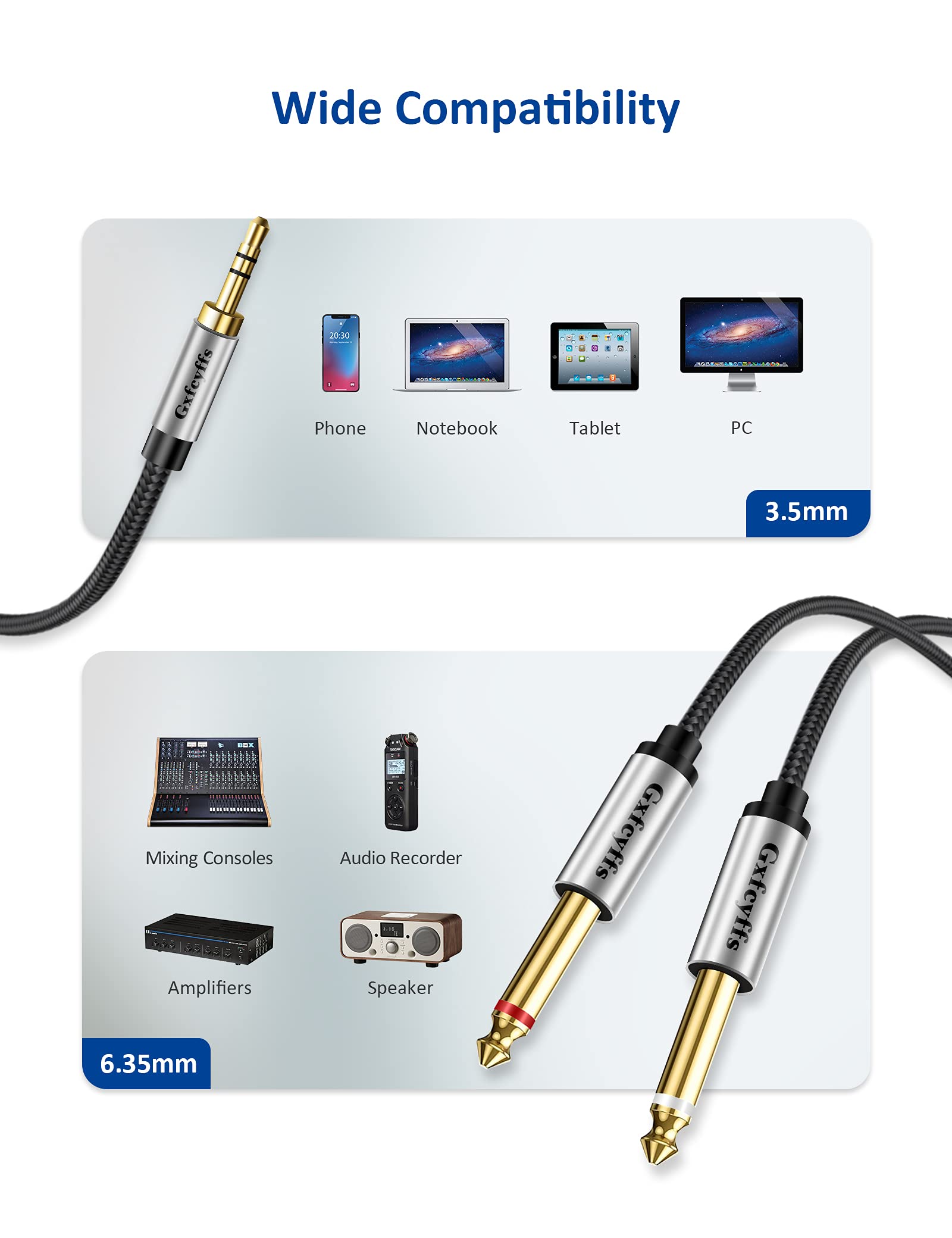 Rallonge Jack 3.5 Oluote TRS 3,5MM Mâle Vers TRS 6,35MM + Câble Mâle 3,5MM, Câble Audio Câble Auxiliaire Stéréo 3 Mètres Matériau de haute qualité:Une nouvelle gaine tressée en PVC et en nylon respectueuse de l'environnement offre une protection supplémentaire contre les dommages par flexion. Remarquable sans Saillie) Le connecteur en forme de L évite efficacement la saillie et la susceptibilité conséquente à la force brute qui peut se produire... Le câble répartiteur audio tressé connecte une prise audio avec sortie jack 3,5 mm à un appareil avec entrée jack 6,35 mm. Excellent son - Connecteur B: TRS 6,35mm Mâle+TRS 3,5mm Mâle Fiche mâle 6,35 mm: Compatible avec les amplificateurs de puissance, audio, mélangeurs, synth étiseurs, claviers, guitares classiques et autres équipements audio professionnels. Anasounds - Jack TRS 3,5mm | Connecteur audio polyvalent Longueur 20 cm Excellent son:Le câble a une prise plaquée or et un boîtier en alliage de zinc pour minimiser la perte de signal pendant la transmission du signal sonore. Fil tressé durable: Le nouveau câble splitter jack audio de couette extérieure en PVC givré non pollué de environnement a une durabilité accrue et aucun emmêlement. Tous utilisent des connecteurs plaqués or 24 carats Spécifications du produit: - Connecteur A: TRS 3,5MM Mâle Le forfait comprend: 1 * Câble Trs 3,5 mm mâle à Trs 6,35 mm + Trs 3,5 mm mâle Câble de qualité professionnelle:TRS 3,5 mm (1/8 ) mâle à TRS 6,35 mm (1/4) + 3,5 mm Câble mâle Le câble répartiteur audio tressé relie la fiche audio avec une sortie jack 3,5 mm à l'appareil avec une entrée jack 6,35 mm . -Fil: 19 / 0,1TC * 2C + AL + S (28 / 0,1TC) Câble de qualité professionnelle: Ce câble doubleur jack adaptateur de câble audio TRS (Tip-Ring-Sleeve).