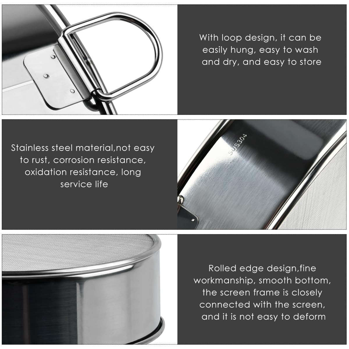 1 tamis à farine à une main, saupoudreur de sucre en poudre, salière à farine, tamis en acier inoxydable à mailles fines, filtre avec grande capacité Parfaits pour un usage quotidien en toute sécurité. Tamis Farine Sucre Glace Tamis De Farine Acier Inoxydable, 2 Pièces 15CM & 20CM Tamis De Pâtisserie Maille Fine, Tamis De Cuisine Professionne Pour Farine, Sucre, Gâteaux | Leroy Merlin Accessoire Pâtisserie Inox 🔹 Set de 2 tamis cuisine pratiques – 20 cm et 15 cm Ce lot comprend deux tamis cuisine en acier inoxydable de 20 cm et 15 cm, parfaits pour tamiser différentes quantités de farine, de sucre glace ou d’épices. Un accessoire indispensable pour toutes vos recettes. Grâce à leur conception empilable, ils prennent peu de place dans vos tiroirs – un véritable atout pour une cuisine bien organisée. Grâce à sa structure légère et sa maille extrêmement fine, ce type de passoire tamis est idéal pour tamiser de petites quantités d'ingrédients ou pour des... Tamis à Farine 150 Mailles, Passoire à Mailles Fines 32 cm, en Inox 304 de 🔹 Acier inoxydable 304 alimentaire – Durable et antirouille Fabriqués en acier inoxydable 304 de qualité alimentaire, ces tamis sont résistants à la rouille, durables et sans aucun résidu chimique. 🔹 Polyvalence en cuisine – Bien plus qu’un simple tamis farine Utilisez-les comme tamis farine, tamis cuisine pour les poudres fines, ou comme filtre pour les liquides, les sauces ou les préparations aux fruits. 🔹 Tamis ultra fin 150 mailles – Résultats impeccables Chaque tamis farine est doté d’une maille ultra fine de 150 mesh qui élimine efficacement les grumeaux et impuretés.
