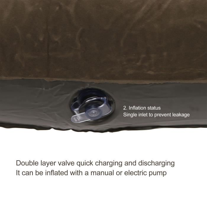 Ajustez facilement la dureté du matelas pour un confort personnalisé. Optez pour le confort et la praticité avec ce matelas gonflable ultraléger équipé d'oreillers intégrés, conçu aussi bien pour la maison que pour le camping. Fabriqué en polymères durables de haute qualité, ce matelas est robuste, confortable et facile à transporter, s’adaptant à toutes vos situations Confortable et ultra-léger : ce matelas de camping ne pèse que 632 grammes et mesure environ 29 x 22 cm une fois plié. Conception ergonomique et service de qualité : Nous avons conçu ce matelas pneumatique dans un souci d'ergonomie, notamment grâce à un coussin en U astucieux qui vous offre un confort d'utilisation optimal. Fabriqué en tissu extensible tricoté 30D, doux et confortable, il est doté d'une bande élastique qui se fixe au coussin d'air. Il offre une durabilité et des performances constantes dans des conditions difficiles, garantissant une durée de vie prolongée du matelas. Que ce soit à l'intérieur ou à l'extérieur, vous profiterez d'une expérience d'utilisation agréable et agréable. Une fois plié, il est aussi compact qu'une bouteille d'eau et se glisse facilement dans un sac à dos ou une val. Léger et portable, il vous permet de dormir confortablement où et quand vous le souhaitez.Facile à utilr : le matelas autogonflant QEZER est doté d'une pompe à air intégrée 100 % inspecté en usine, aucune fuite après 48 heures d'utilisation statique. Matelas gonflable avec oreiller Matelas Camping Autogonflant Portable Matelas Gonflable Ultraléger (avec Oreiller) Matelas Voiture Touran Le revêtement TPU le rend imperméable, résistant aux rayures et facile à nettoyer. Une fois plié, il est aussi compact qu'une bouteille d'eau et se glisse facilement dans un sac à dos ou une valise. Léger et portable, il vous permet de dormir confortablement où et quand vous le souhaitez. Facile à utiliser : le matelas autogonflant QEZER est doté d'une pompe à air intégrée. Le dégonflage est tout aussi rapide : il suffit de retirer la housse.