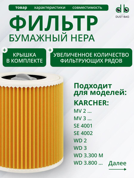 Filtre Cartouche Kärcher 2x KFI 3310 Cartridge Filtre Cartouche Compatible Pour Kärcher KWD1 Filtre Aspirateur Filtre À Cartouche Monobloc Kärcher KFI 3310 The cartridge filter allows you to vacuum without any need for additional filter changes. The filter can be easily attached and removed by twisting it Suitablr for:WD1 Compact Battery1., 198-300., 0., ., ., -320., 0WD2 Plus1., 628-000., 0., ., ., -099., 0WD 2-181., 628-500., 0., ., ., -549., 0WD2/ WD2 Premium/ KNT2 Premium1., 629-760., 0., ., ., -784., 0WD 3-181., 628-550., 0., ., ., -599., 0WD3/ WD3 Battery1., 628-101., 0., ., ., -199., 01., 629-800., 0., ., ., -969., 0KWD1/ KWD2/ KWD31., 628-400., 0., ., ., -459., 0WD 2., 200 - WD 2., 2501., 629-550., 0., ., ., -559., 0WD 2., 500 M / WD 2., 400 M1., 629-580., 0., ., ., -582., 0WD 3., 200 - WD 3., 800 M1., 629-600., 0., ., ., -659., 01., 629-663., 0., ., ., -664., 01., 629-668., 0., ., ., -669., 01., 629-680., 0., ., ., -702., 0SE4001 / SE40021., 081-130., 0., ., ., -199., Compatible avec Kärcher WD1 Compact Battery, WD2 Plus, WD 2-18, WD2, WD2 Premium, KNT2 Premium, WD 3-18, WD3, WD3 Battery, KWD1, KWD2, KWD3, SE4001, SE4002, WD 2., xxx-WD 3., xxx Karcher WD 2 Plus Wet and Dry Vacuum | Free Delivery + 1 Year Extra