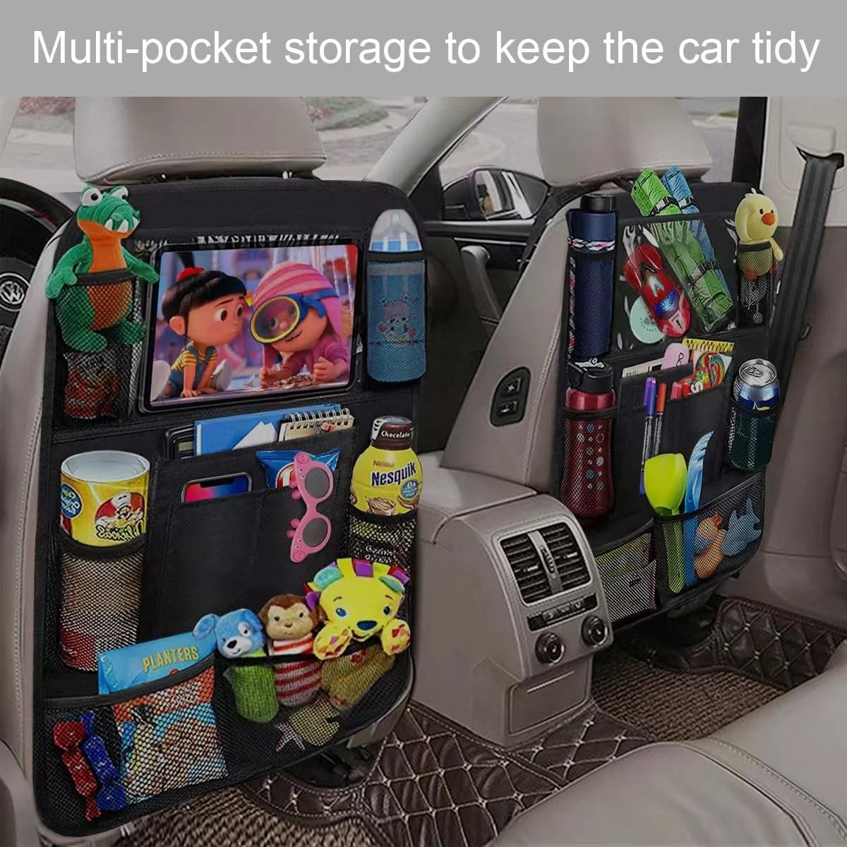 Nous n'utilisons pas de matières premières toxiques pour nous assurer que nous fournissons des produits de la meilleure qualité pour une vie plus verte pour vous et votre famille, protégeant ainsi votre santé et notre environnement. La voiture ajoute un espace de rangement supplémentaire pour garder votre voiture propre et bien rangée. La protection du dossier dispose de 8 sac de rangement pour ranger les jouets des enfants, les collations Dossier A3 de 40 Poches A3, Organisateur de dossiers Extensibles... Rapide à installer : l'organisateur de dossier de siège de voiture convient à la plupart des voitures telles que les SUV, les bus VW, les caravanes, les camping-cars et tous les types de sièges de voiture. 2Pcs Organisateur De Voiture, Protège-Siège Arrière Voiture Enfants Kick Mats Protection Arriere De Siege Auto Impermeable Support Tablette Transparent Rangement De Voiture Multi Poches 78463771 Vous pouvez rapidement attacher ou retirer l'organisateur des sièges avant, il suffit de fixer la boucle de la sangle d'épaule et d'ajuster la longueur, mais veuillez noter qu'il peut ne pas convenir à certaines voitures de sport et à des sièges sans appui-tête ou à des dossiers inégaux. Il peut également être lavé en machine. Sac Organisateur Voyage Protection Siege Voiture Auto Avec Poches Organisateur Universelle Protège Facile à Nettoyer Rangement Voiture Le sac de rangement peut également être utilisé comme portemanteau dans les chambres d'enfants, les bureaux et les salles de classe. Indispensable pour la conduite : la pochette transparente mesure 28*24,5 cm (10,8 pouces) et convient à la plupart des tablettes, ce qui vous permet d'y placer facilement votre iPad. Elle n'émet pas d'odeurs chimiques, même à des températures élevées, ce qui permet aux passagers arrière de regarder leurs films préférés tout en dégustant des snacks et des boissons dans la voiture, rendant votre voyage plus facile et plus agréable.