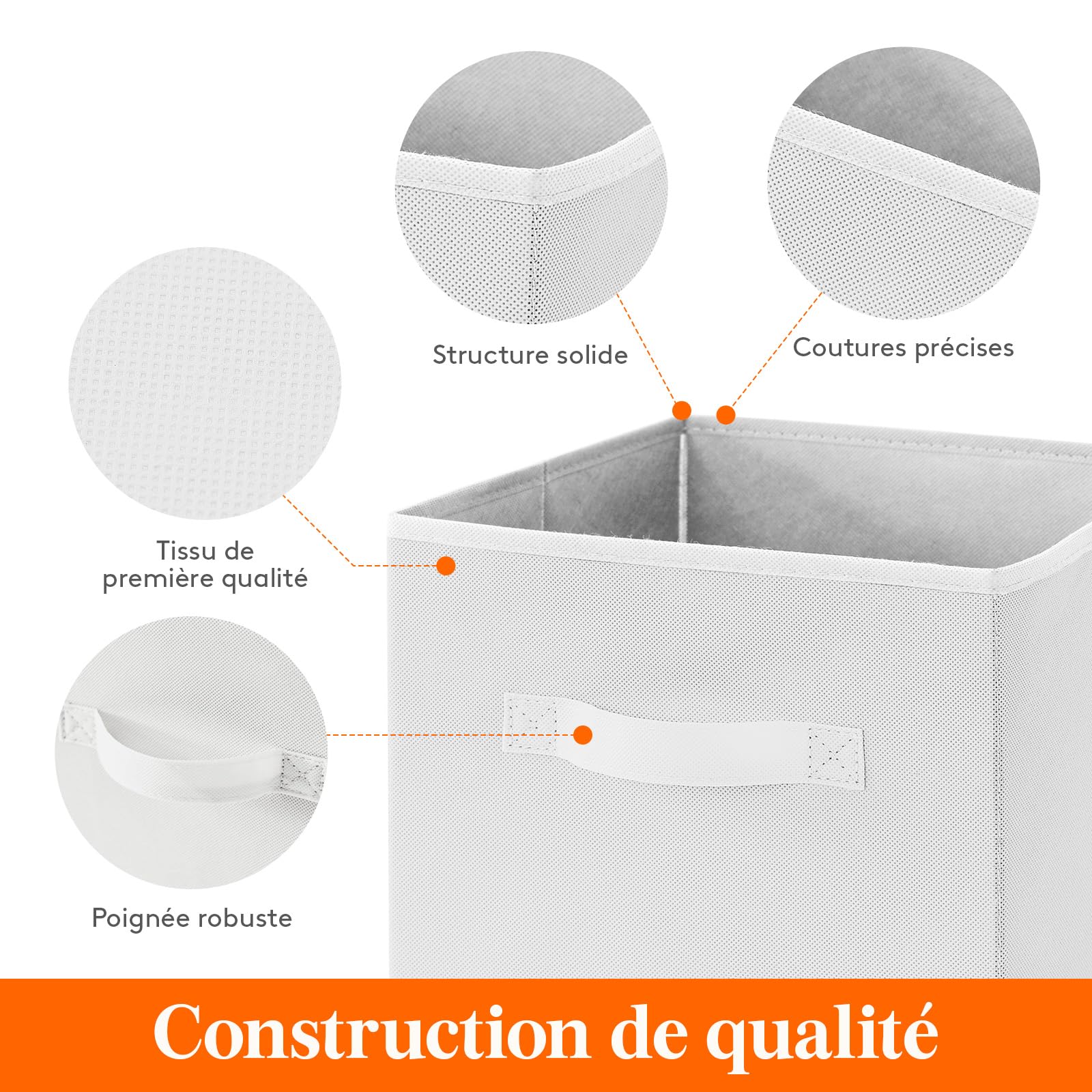 1 Plusieurs couleurs dispo 2 Une structure solide 3 Conception pliable Organisez vos articles avec cet ensemble de 8 cubes de rangement durables et stables. Conçus de manière pratique, ils tiennent dans la main et se retirent facilement des étagères Faciliter le rangement Organisez vos articles avec cet ensemble de 8 cubes de rangement durables et stables. Le package comprend: 26,5 x 26,5 x 28 cm (18L); 30 x 30 x 30 cm (30L); 33 x 33 x 33 cm(36L); 33 x 38 x 33 cm(41L). Tous les matériaux sont biodégradables et sûrs à utiliser. Décoration complémentaire: Disponibles dans une gamme de couleurs vives, ces armoires de rangement cubiques s’intégreront sans effort à votre espace de vie existant, ajoutant une touche de sophistication sans faille. Construction de qualité: Avec un tissu non tissé de haute qualité et un insert en carton qui a été cousu avec précision, ces cube de rangement sont fermes et durables pour une utilisation prolongée. Décoration complémentaire : avec un choix de 2 teintes neutres de gris et de gris clair, ces cubes de rangement se fondent parfaitement dans votre espace de vie sans aucun effort En forme de cube, ces organisateurs de placards et bacs de rangement sont flexibles pour s'adapter à n'importe quel espace : dans le placard, sur les étagères, sous un plateau de table basse ou sur un bureau. Cubes de rangement Bacs de rangement cubiques de 28,9 cm (lot de 8 Bac De Rangement Lifewit Lot De 10 Cube De Rangement Tissu, Boite Rangement Pliables, Caisse Avec Poignu00e9es, Panier Et Bou00eetes De Rangement Pour Vetements, Jouets, 26,5 X 26,5 X 28 Cm, Rose Casier De Rangement Une conception pratique: Grâce à leur conception pliable simple, les panier rangement tiennent fermement à la verticale lorsqu'ils sont utilisés et peuvent être repliés et rangés instantanément lorsqu'ils ne sont pas utilisés. Vous pouvez les utiliser ensemble ou les séparer dans différents espaces - c'est comme vous voulez. hero-video Vidéo de marchand Plusieurs couleurs dispo Une variété de couleurs est disponible pour s’adapter à la plupart des styles de maison. Une structure solide Les inserts en carton inclus ajoutent de la stabilité à la structure de ces bacs de rangement.