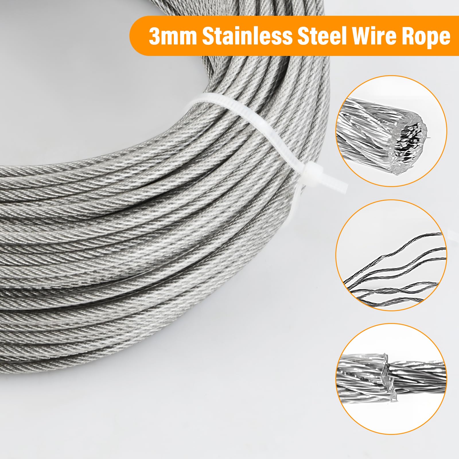EN STOCK : Vtizikl 50m Serre Cable Acier, 67 Pcs Kit Gaine Cable 3mm 7x7 avec 4 Tendeur Cable, 20 Boucles Sertissage, 10 Cosses Cable, 10 Pinces, 4 Crochets Muraux, Clé, Coupe Fil, Cable INOX Rideau Fil Corde a , XHWD WHL K 7505 pas cher. Livraison rapide partout en France Il ne s'étendra pas lors de la coupe et peut protéger votre main. Fil A Linge Retractable Mural 50m Cable Acier 3mm, Fil A Linge Extérieur, 67 Pcs Kit Cable Résistance 167kg Acier 304 【7x7 Construction Robuste】 : Ce cable pour rideaux est composé de 7 brins avec 7 brins dans chaque brin fournissant la flexibilité et la durabilité. Il convient également pour suspendre des photos, des miroirs et des projets artistiques. Résistant à la corrosion et à l'oxydation, ne rouille pas dans les environnements humides, longue durée de vie. 15M Corde Séchoir Etendoir à Linge Cable Fil 316 Acier inox 7x7... Câble acier ø 2,5 mm 1 embout serti - Longueur 6 m 【50m Flexible Wire Rope】 : Livré avec 50m cable acier, 20pcs manchons en aluminium, 10pcs pinces à câble, 10pcs cosses à câble, 4pcs tendeurs, 4pcs crochets, 16pcs vis, 1pcs clé à douille et 1pcs clé à câble. Diamètre extérieur enduit : 2mm/3mm. La résistance à la rupture du câble en acier inoxydable supporte jusqu'à 167 kg.