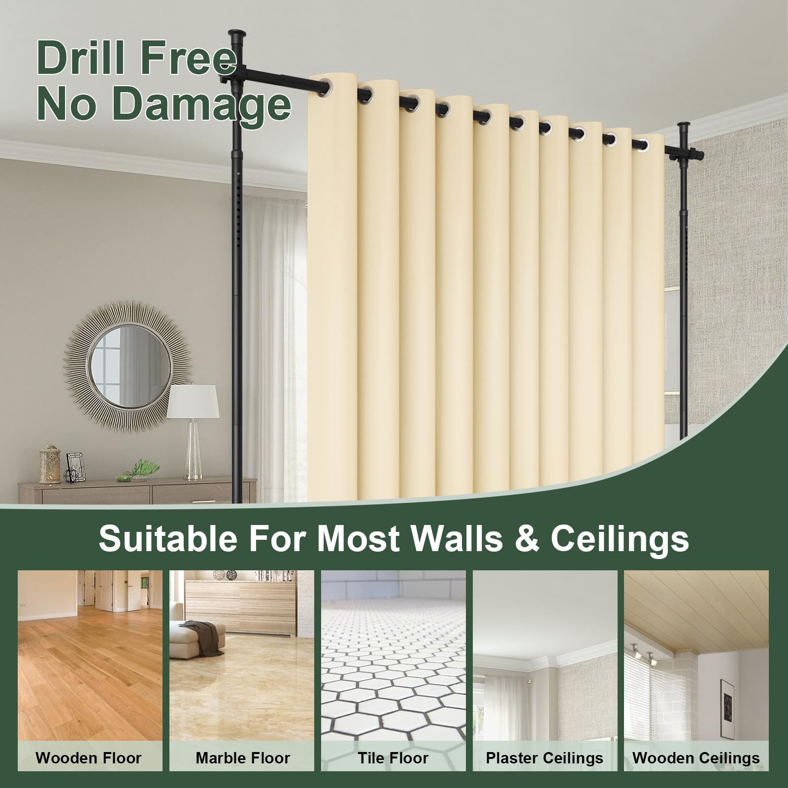 Avertissement De Sûreté Assembler correctement le séparateur de pièce et éviter de placer des objets lourds ou de tirer dessus pour éviter tout risque de renversement. Description du produit Le paravent Gar est la solution idéale pour une répartition flexible de l'espace. Rideau de séparation polyvalent : le séparateur de pièce est la solution parfaite pour les appartements en location et les espaces de vie communautaires, car il ne laisse aucun dommage aux murs ou aux plafonds, ce qui offre ainsi une possibilité de séparation idéale. Barres De Vitrage Extensible Tringle Rideau Sans Percage Réglable Installation facile : le séparateur de pièce peut être installé en quelques minutes sans outils, ce qui en fait une solution conviviale pour créer des séparations de pièce dans différents environnements. Transformez vos espaces de vie avec notre tringle à rideau sans percer ! Fini les murs abîmés et les frustrations liées aux installations compliquées. Cette solution ingénieuse vous permet de suspendre des rideaux en un clin d’œil, tout en préservant l’esthétique de votre maison Tringle Ajustable Salon Chambre Blanc Separateur De Piece Tringle A Rideaux Sans Percage S Umbra Anywhere Tringle Rideau Plafond Sans Percage Tringle Rideau Sans Perçage Réutilisable et pratique : le paravent peut être facilement retiré et réutilisé dans différentes pièces, ce qui en fait une solution de séparation flexible et pratique pour les appartements, les bureaux, les dortoirs et plus encore